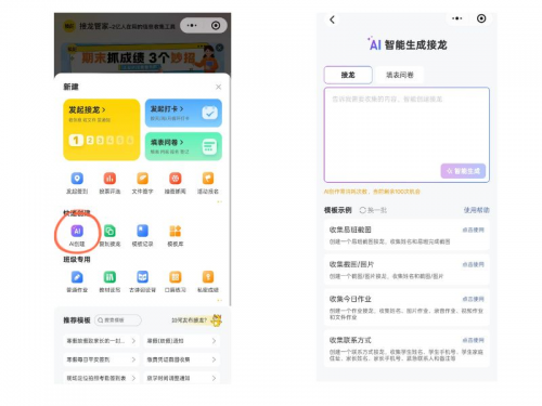 接龙管家的AI就能自动生成一条接龙,老师只需要把接龙转发到班级群里就可以了,免费就能用哈,不用花钱。