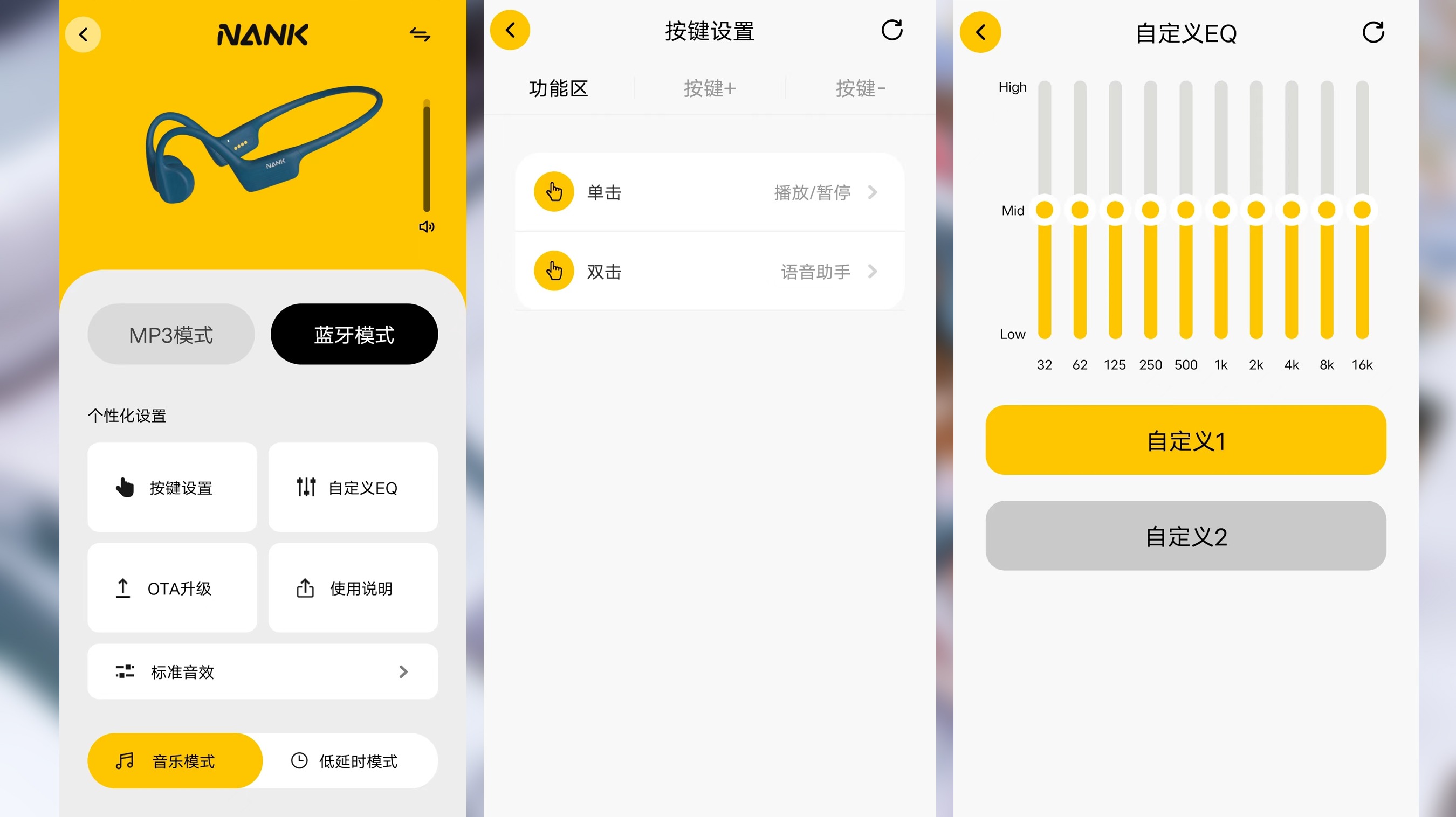 还有这次南卡终于推出APP了,南卡Neo2可以通过APP直接进行模式切换、按键设置、自定义音效、升级、查看电量等,非常的方便而直观。
