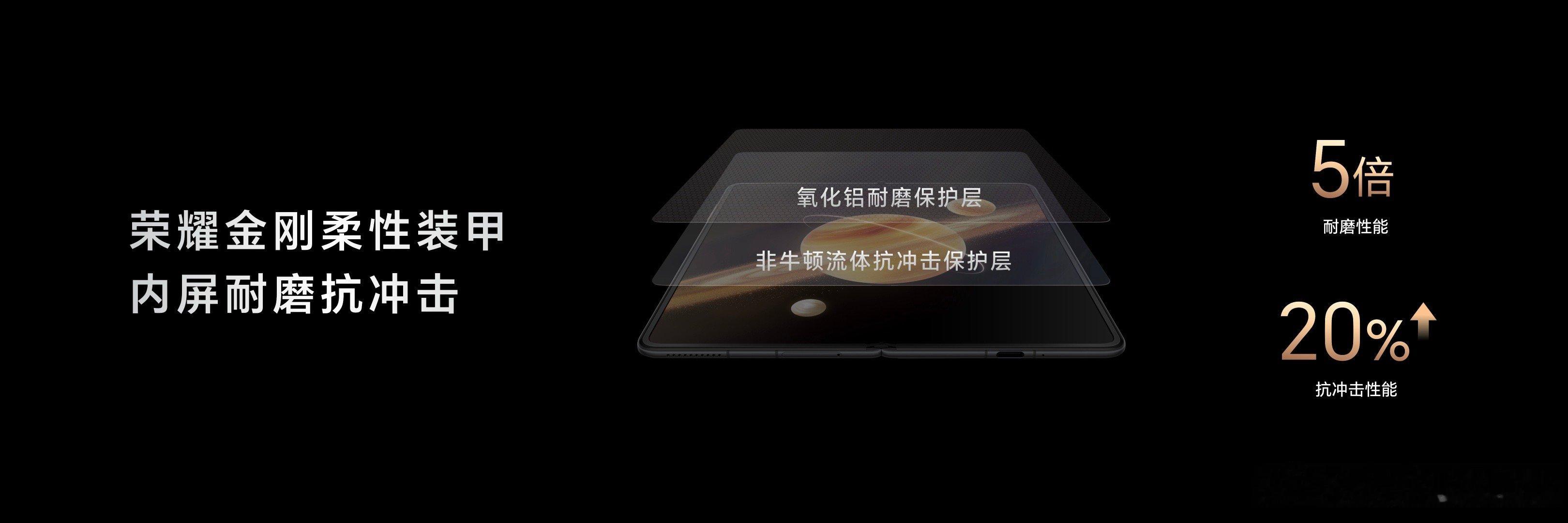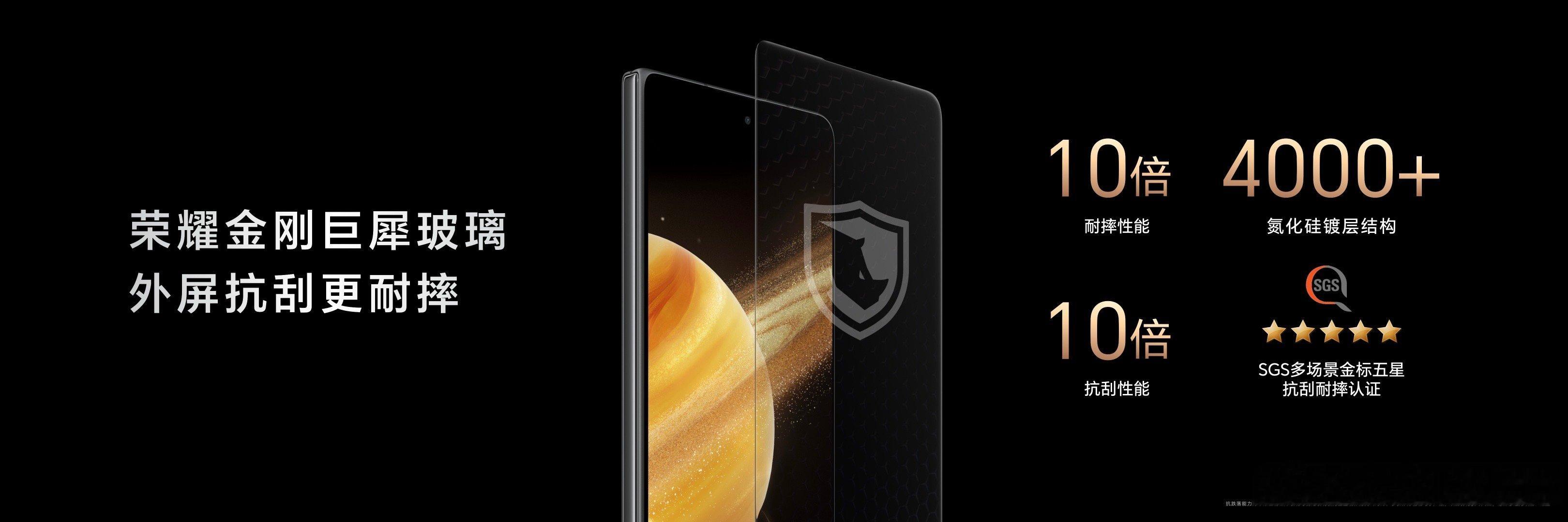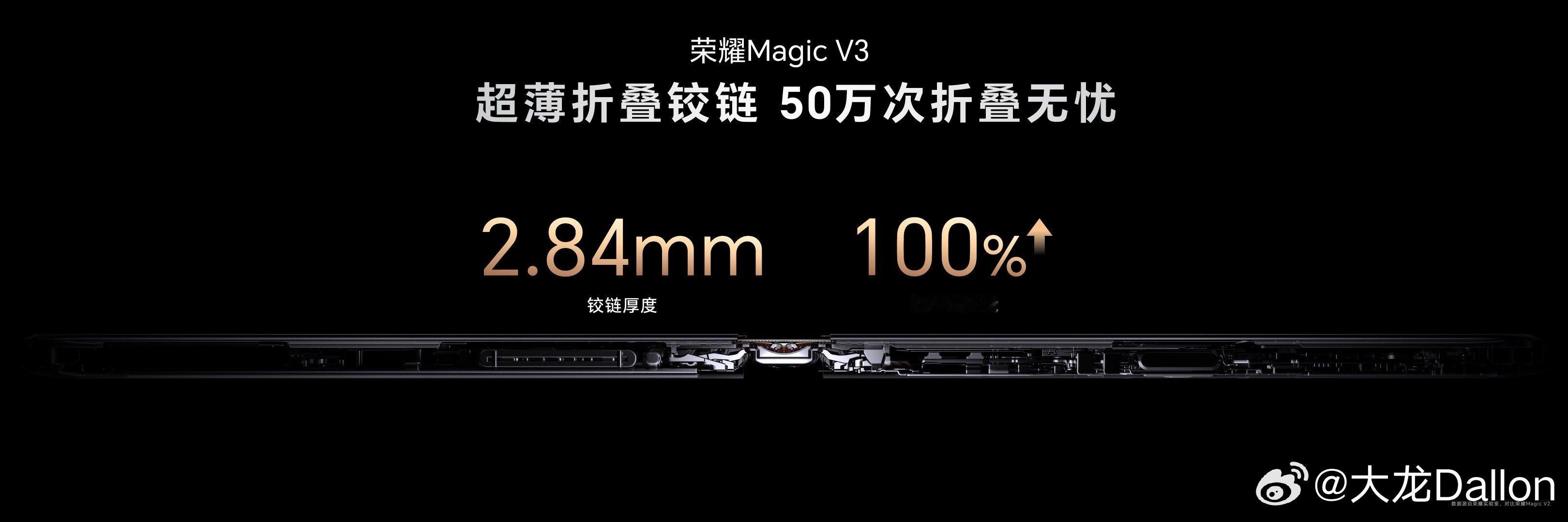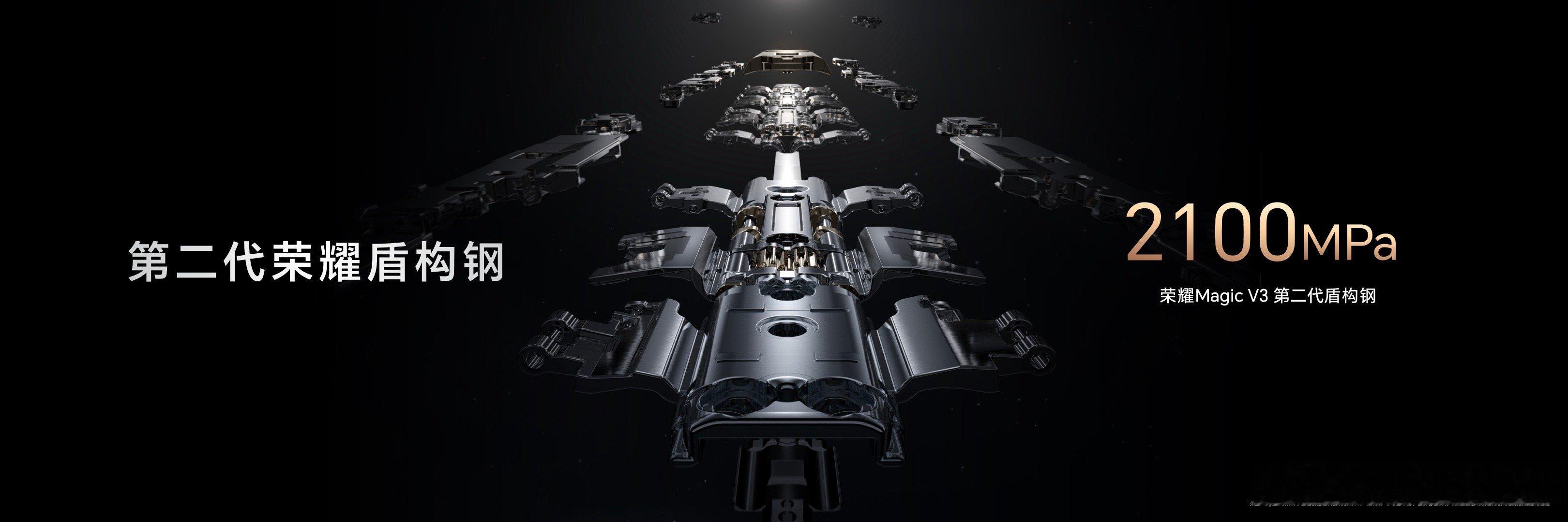 #荣耀Magic V3#采用了航天特种纤维机身,同时,将强度高达5800MPa比钢更强的纤维之王应用到荣耀Magic V3绒黑色版本上,借助第二代荣耀盾构钢打造迄今为止最薄的折叠铰链,仅有2.84mm厚。