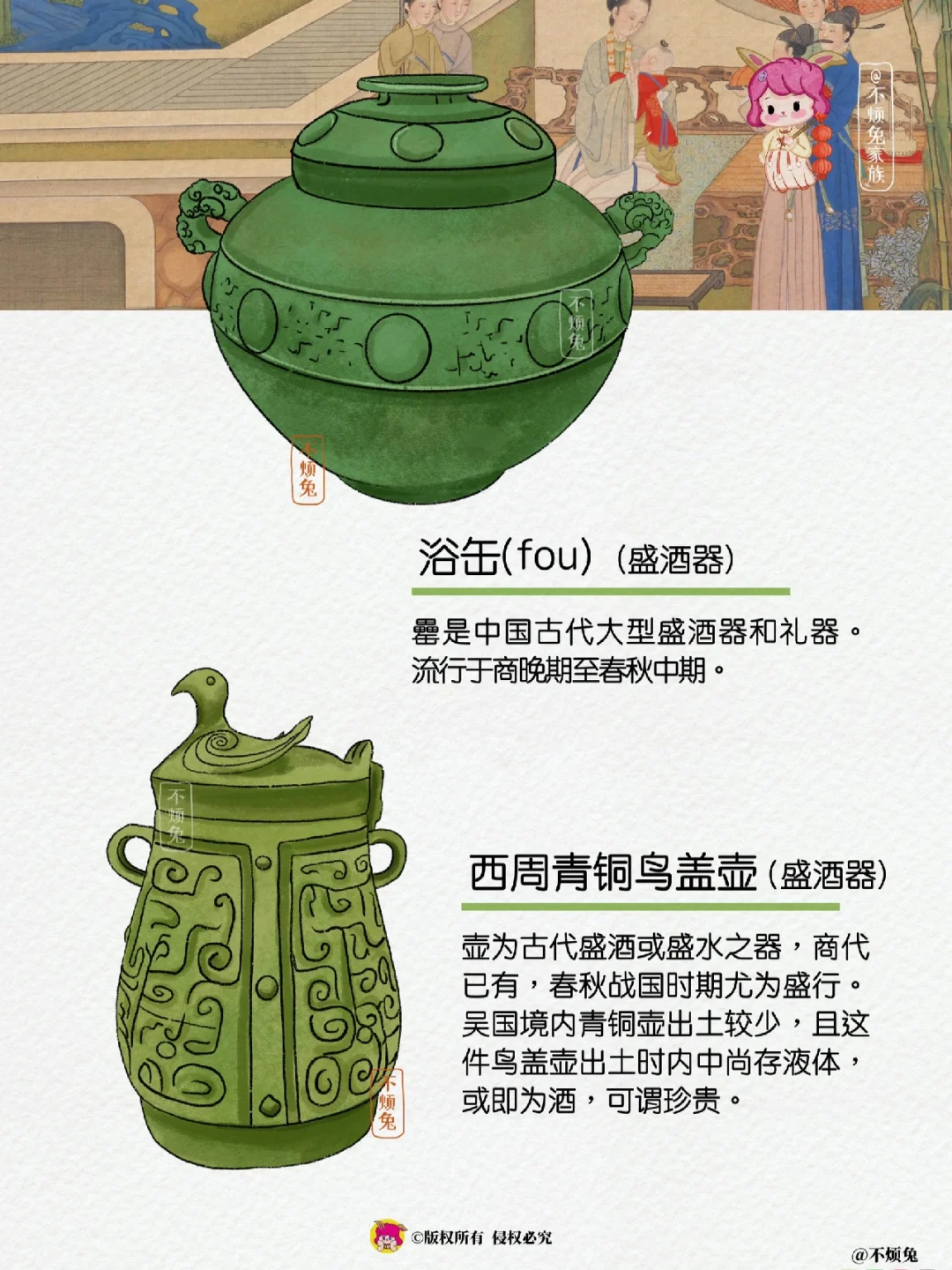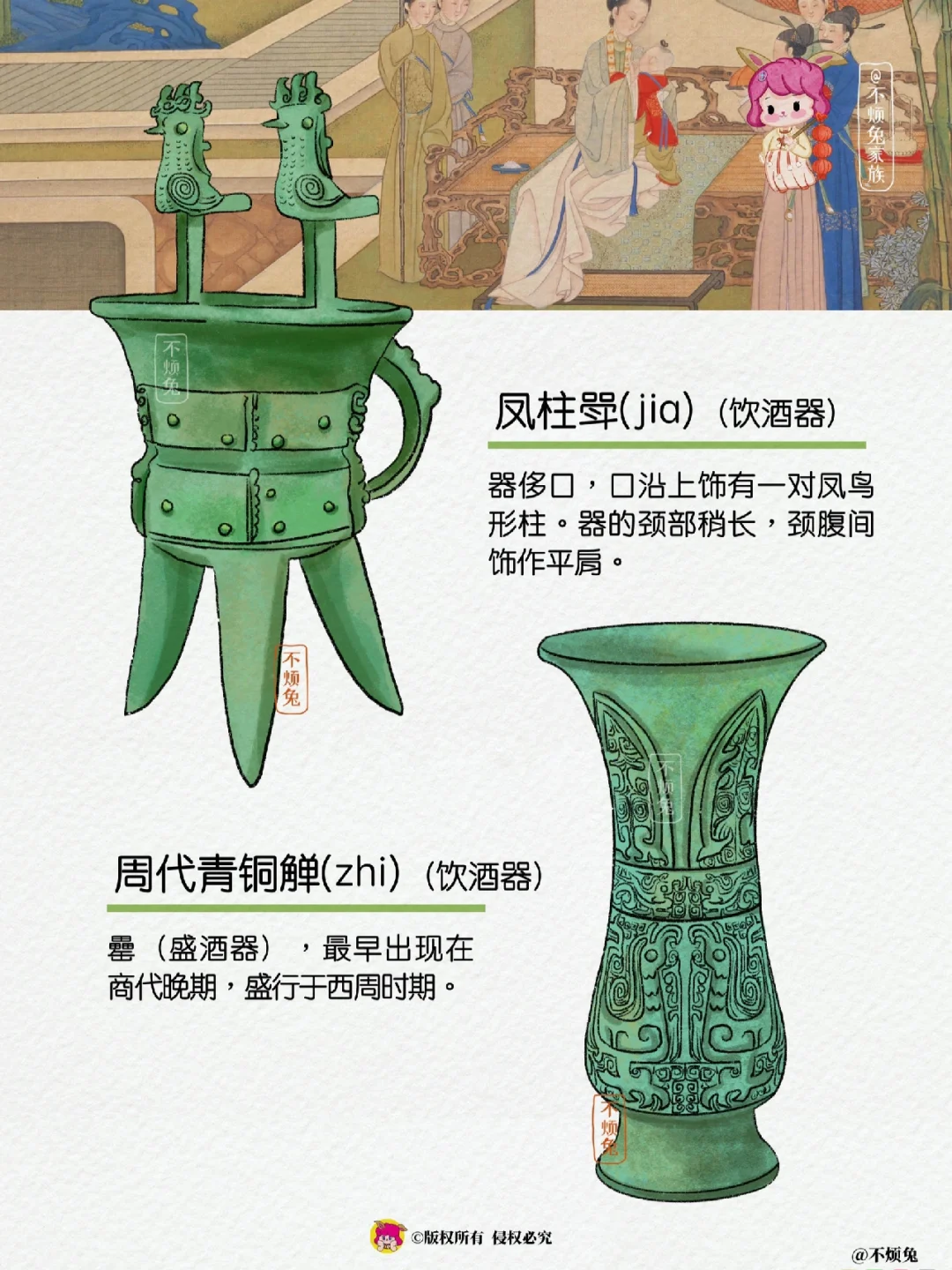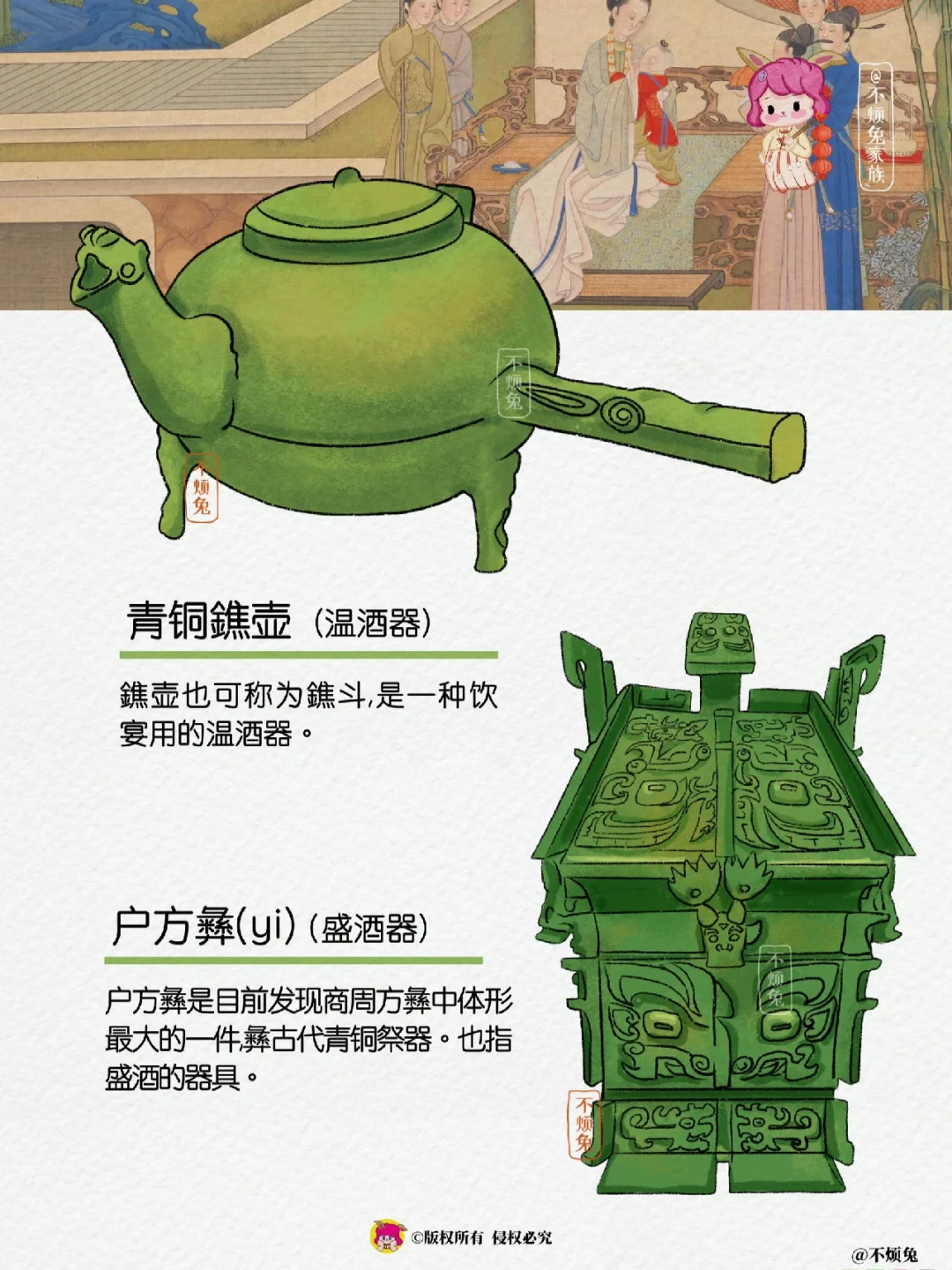 🟢殷商时代的青铜酒器形制丰富多样、造型独具匠心、美轮美奂。各式各样青铜酒器,不免让后人惊叹于古人想象丰富的艺术魅力。