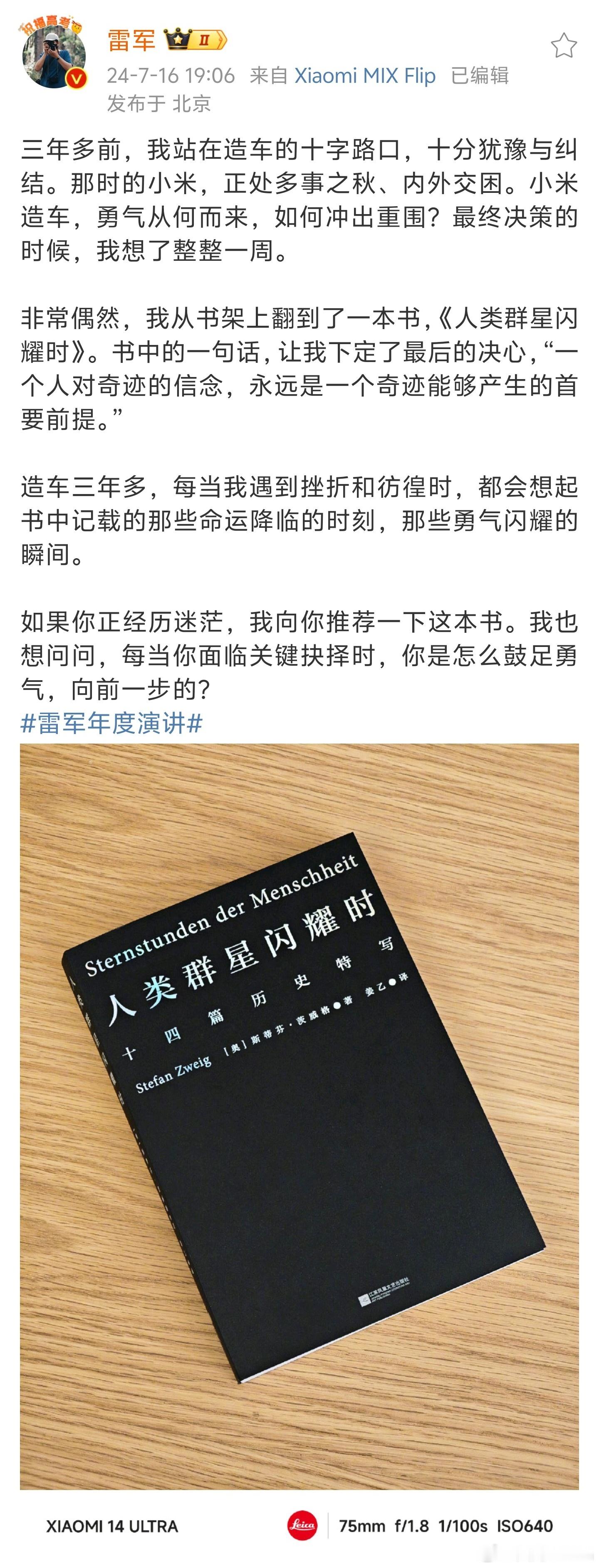 雷总分享了影响他造车的一本书,你们有没有一本书影响到你们人生中的某一件大事?有时候看书,确实可以从中获得一些能量,而这股能量非常强大,能够给人勇气,信念,大家可以推荐一下?#影响雷军造车的一本书#