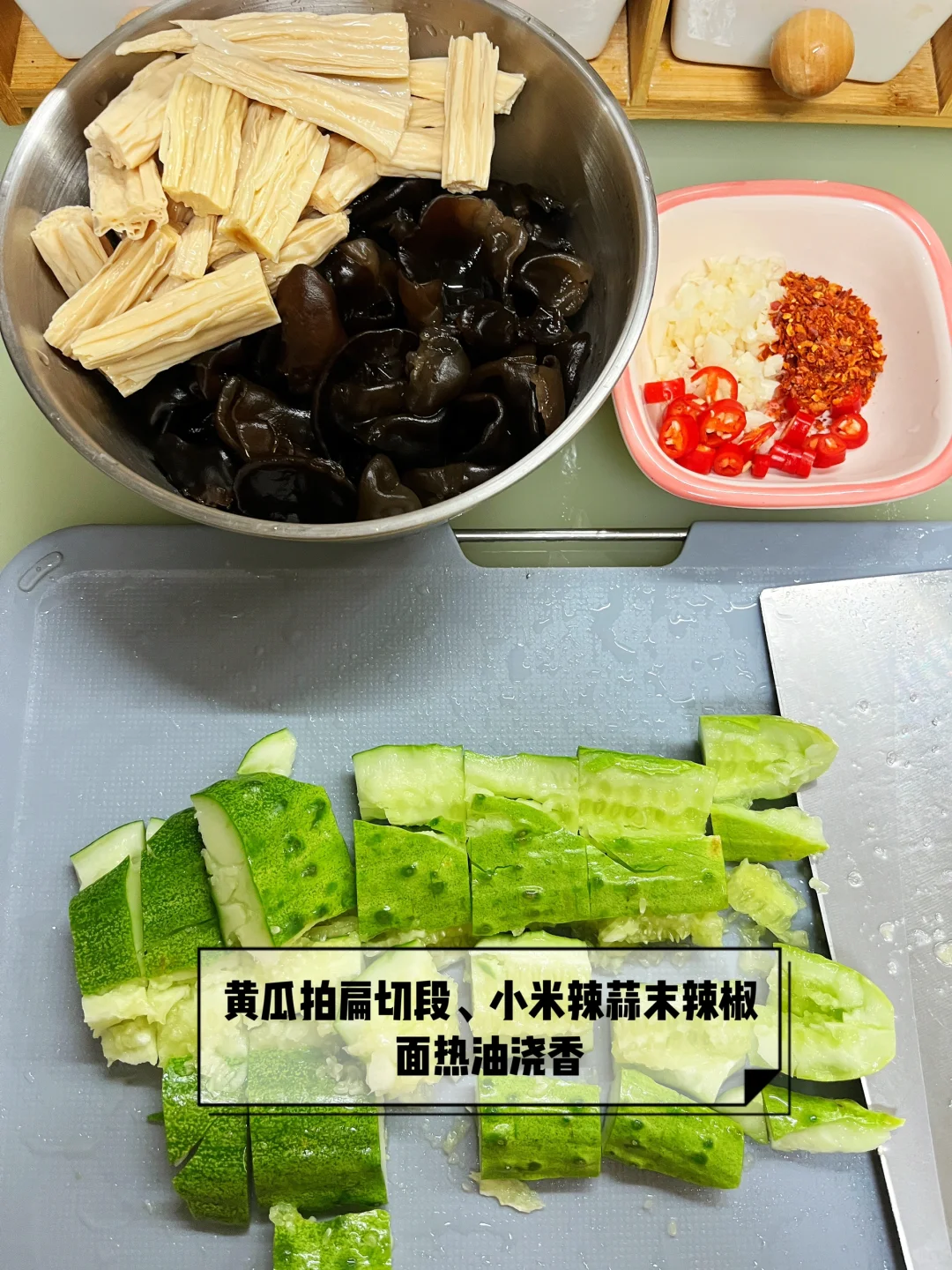 凉拌黄瓜腐竹木耳,酸辣开胃巨下饭