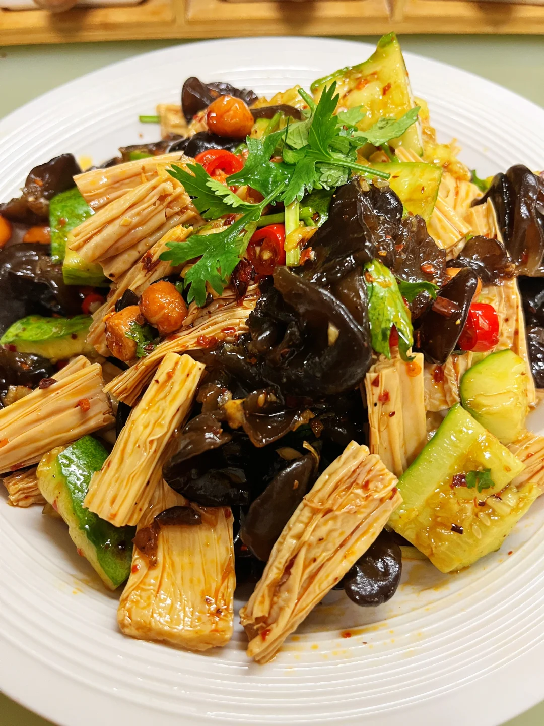 这酸辣爽口的拌黄瓜腐竹木耳,简直是夏天食欲救星!加点花椒油,绝了!不吃辣的也得试试,不爱上算我输!