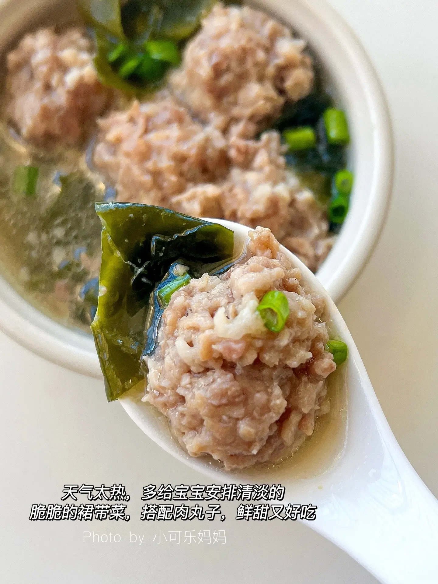 家里有宝宝试试这个蒸丸子,鲜甜又好吃。今天分享这个裙带菜蒸肉丸,鲜嫩多汁,有菜有肉营养丰富,肉这么做软嫩不柴,搭配脆脆的裙带菜,汤很鲜甜,做法也简单,不爱吃菜的宝宝一定要安排上,真的太好吃啦 - 🥣食材: 猪肉末 裙带菜 淀粉 . ✅详细做法请看图片 ✅食材大小根据宝宝咀嚼能力处理