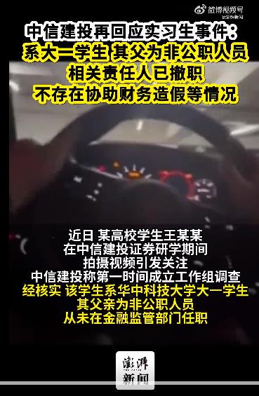 【中信建投通报实习生事件:系大一学生,其父为非公职人员,相关责任人已撤职】7月2