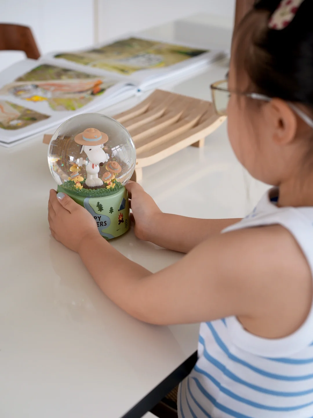 下个月就要七夕了,和女儿一起重新认识了这个节日 除了我们熟悉的牛郎和织女的爱情故事 在古代,这一天也被称为乞巧节、女儿节 未婚女孩会在这一天展示自己的手工技艺 向织女星🌟乞求智慧,和像织女一样的巧手 作为家中唯一的「少女」 这个节日,对女儿来说当然再合适不过 按照传统,她要练习穿针引线 穿得越快,乞到的「巧」也就越多 8月10日七夕这一天 刚好也是一位著名影视明星的生日🎂 也是陪伴我童年的一位明星了——史努比! 所以,怎么能少了它 我特意选了一个非常可爱的史努比水晶球 JARLL赞尔和Snoopy史努比的联名 有森林🌲、小溪、帐篷⛺️、篝火🔥和绿草地 戴着露营小帽子的史努比和胡士托 像是在草地上踏步旋转 实在是太可爱了 以前每次在书店、美术馆逛周边的时候 女儿都会拿起八音盒🎵或是水晶球 乞求一样看着我,让我给她买一颗 小小的玻璃球里,晶莹的雪花缓缓飘落又升起 好像注视久了,自己也能变小 走进水晶球的世界中去 水晶球里的音筒,和其他的乐器不同 随着它的旋转,流淌而出的音乐像是有魔法一样 当你得到了一颗赞尔水晶球 你就知道什么叫做「空灵」