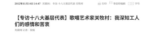央视网《专访十八大基层代表 歌唱艺术家关牧村:我深知工人们的感情和苦衷》