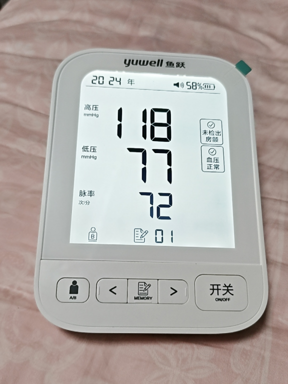 这款血压计的使用体验挺直接,按键操作简便,一键启动后语音播报结果,不需要频繁查看屏幕,特别适合老人使用。屏幕显示清晰,三色背光让不同的测量结果一目了然,晚上使用也没问题。它搭载的技术则非常强大,内置的传感器能同时采集心率和脉搏波节奏,通过先进算法进行处理。不过,产品的不足之处在于,屏幕亮度有时不够均匀,按键的松动感和反应不及时,也影响了整体的操作感。