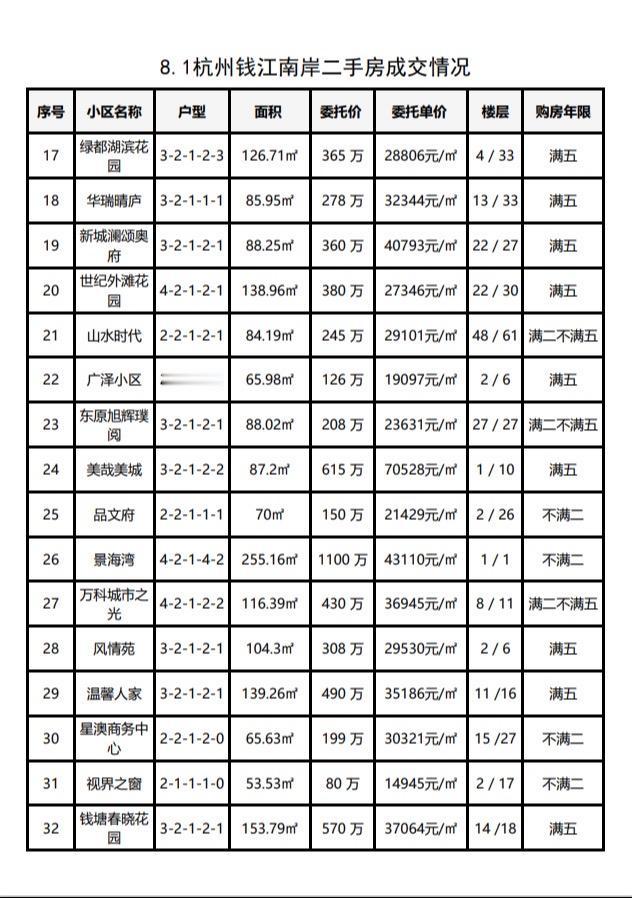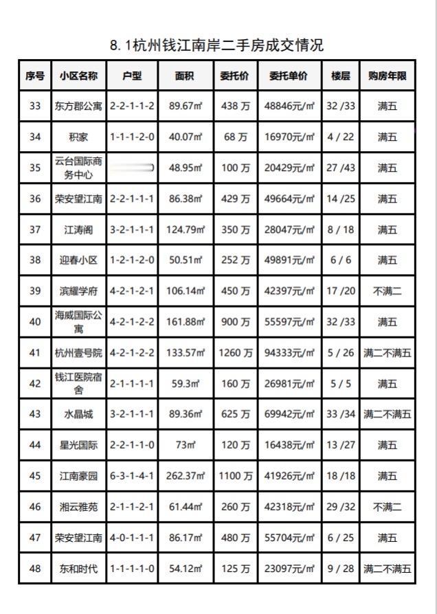 8.1杭州钱江南岸(滨江和萧山)二手房每日成交数据分享,昨日共成交48套,8月开