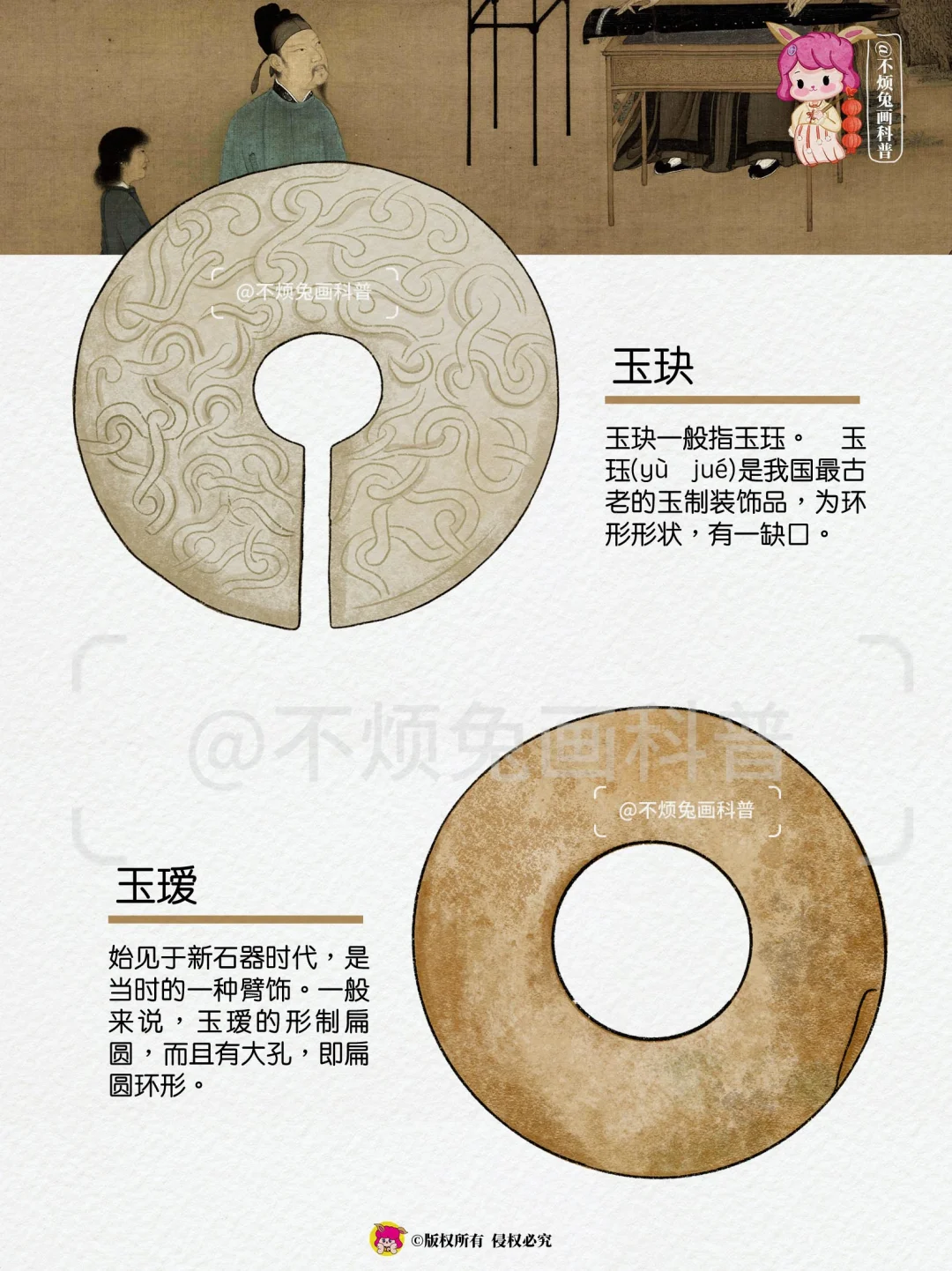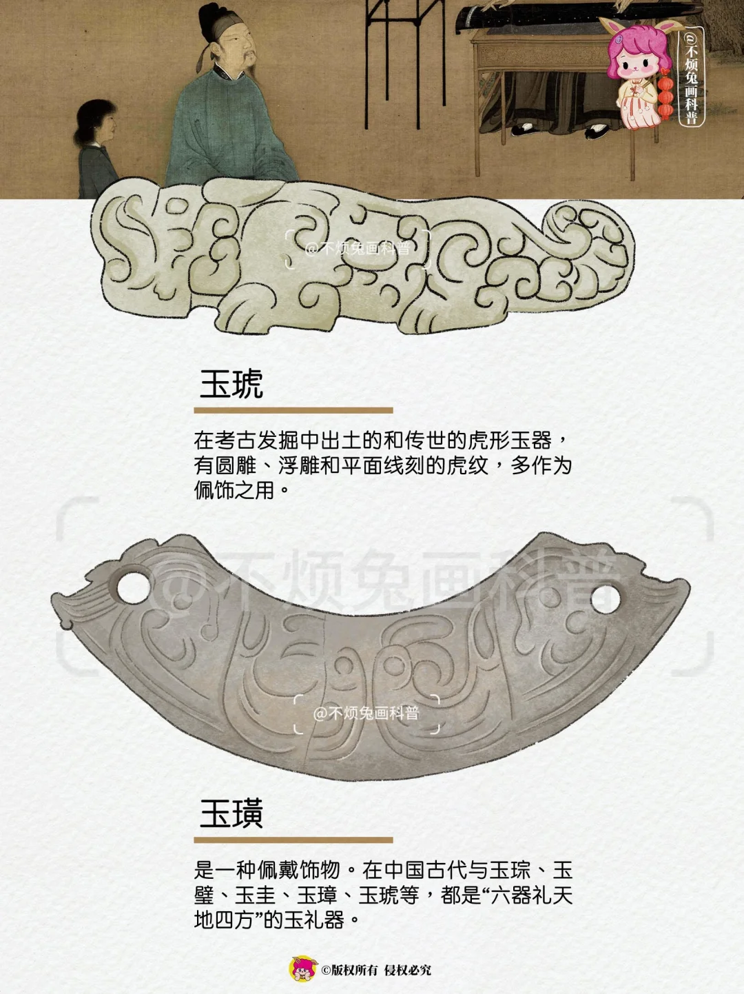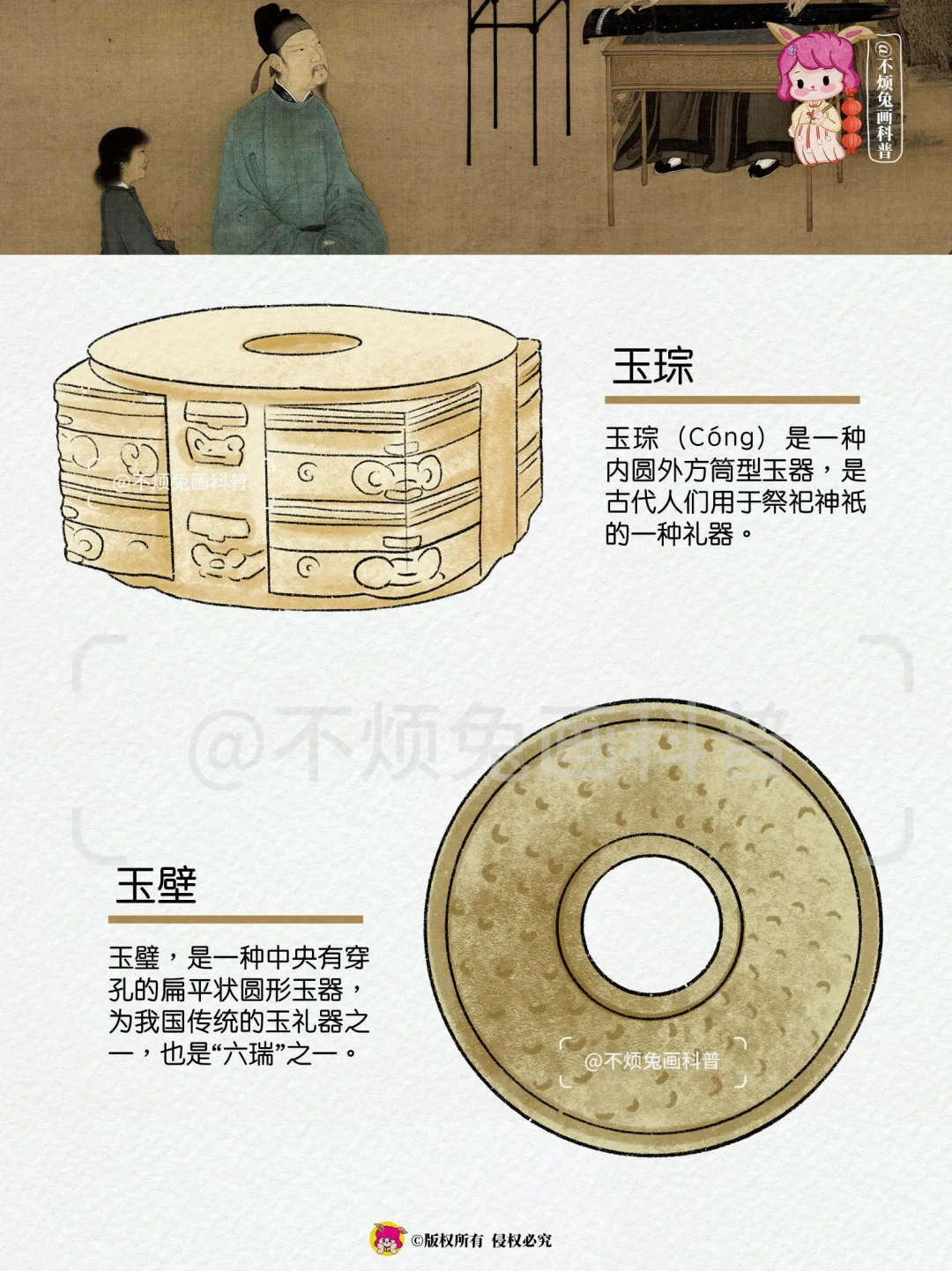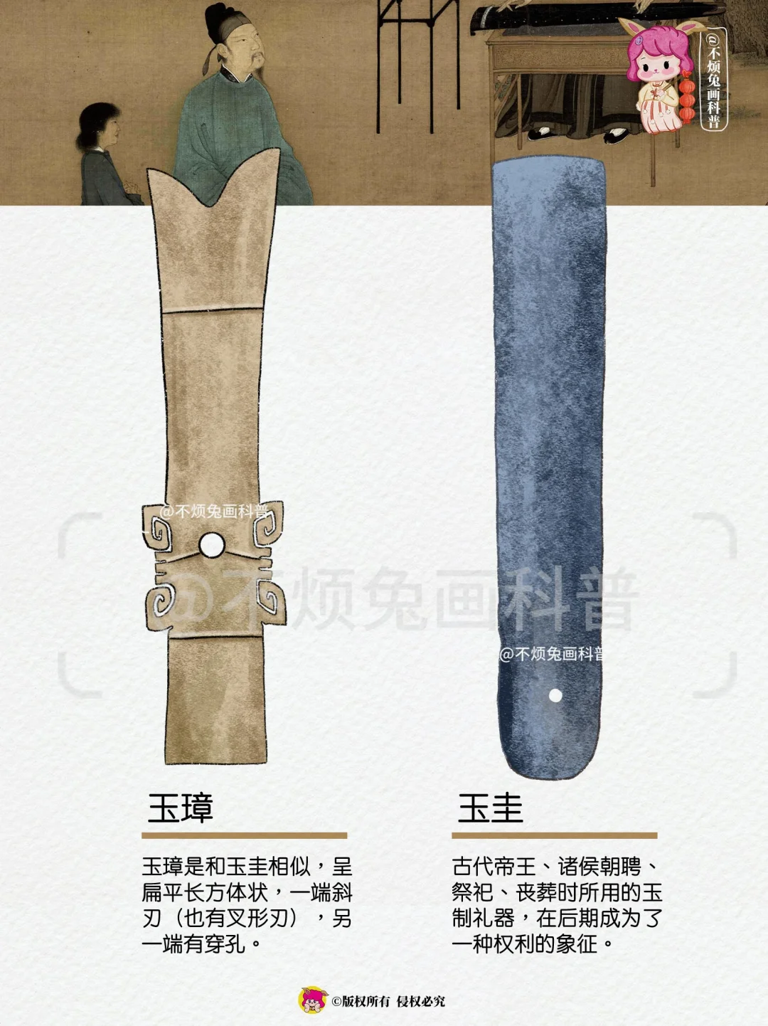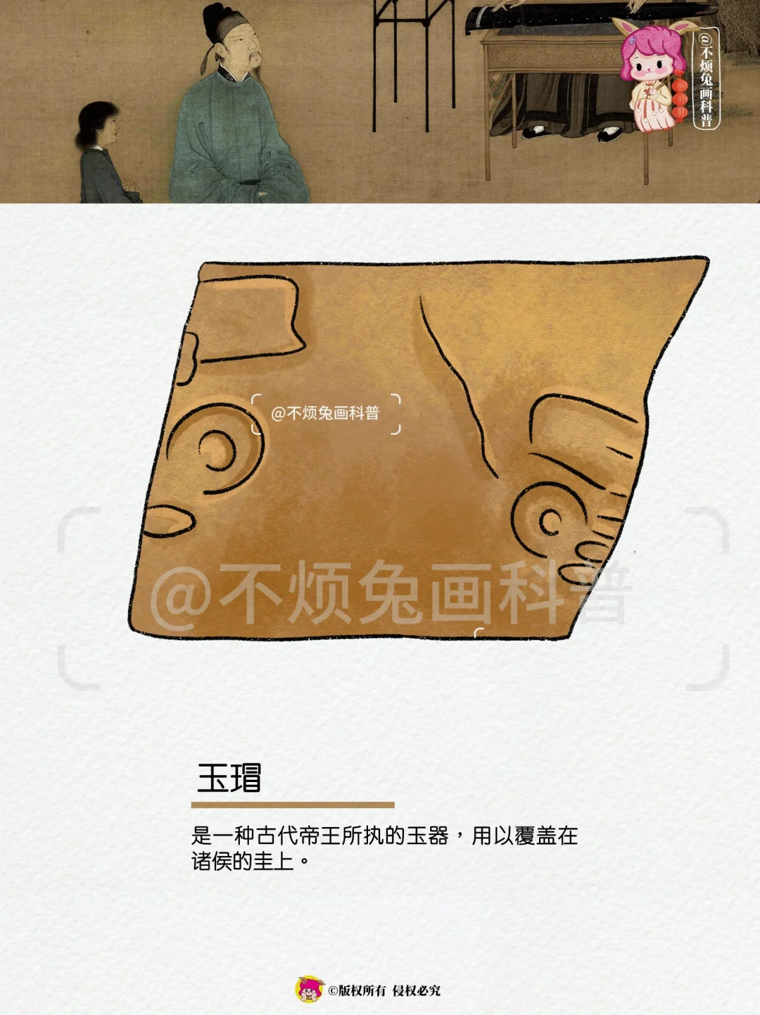 古代帝王、诸侯朝聘、祭祀、丧葬时所用的玉制礼器,在后期成为了一种权利的象征。