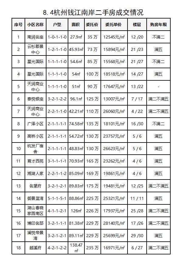 8.4杭州钱江南岸(滨江和萧山)二手房每日成交数据分享,昨日共成交36套,成交保