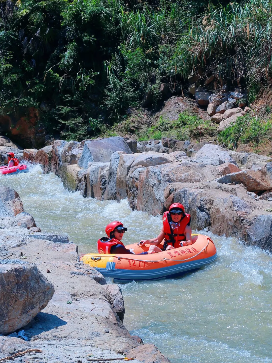 4.8 公里的漂流河道全程飘下来大概是1个半小时左右