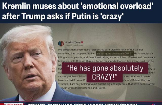 紧接着特朗普就在社媒上发文批评了俄罗斯的举动,声称普京变得疯狂至极。
