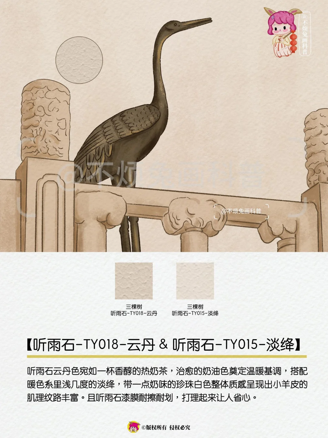 听雨石云丹色宛如一杯香醇的热奶茶,治愈的奶油色奠定温暖基调,搭配暖色系里浅几度的淡绛,带一点奶味的珍珠白色整体质感呈现出小羊皮的肌理纹路丰富。且听雨石漆膜耐擦耐划,打理起来让人省心。