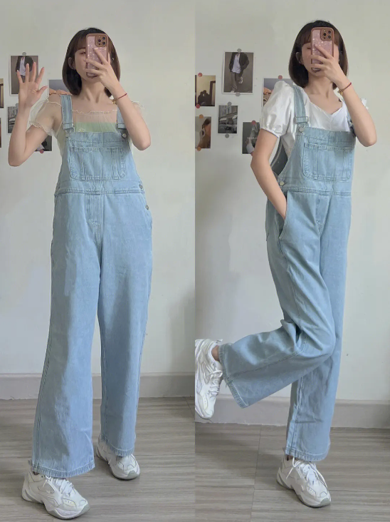- 搭配T恤:选择一件简约的白色T恤与背带裤搭配,展现出轻松自在的休闲风格。可以将T恤前半部分塞入背带裤中,突出腰线,再搭配一双白色运动鞋,打造出清爽又时尚的造型。