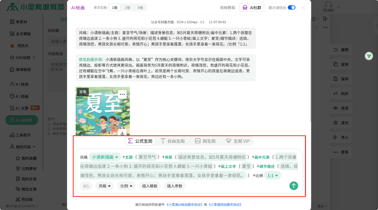 同时,左侧功能区还可以选择AI图片生成、AI起标题等等功能,不怕文章没插图,爆款标题分分钟解决~