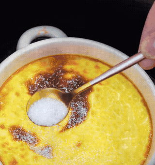 再烤这5分钟,糖遇热会迅速融化,表面就会有一层焦糖壳,又脆又香,跟外面卖的焦糖布丁一个味道。