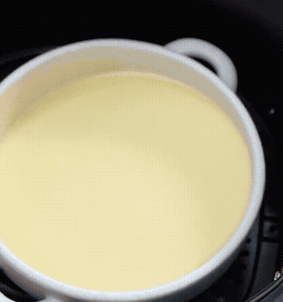 第七步,把蛋奶液倒进耐热碗或者烤碗里,直接放进空气炸锅,180度烤20分钟。