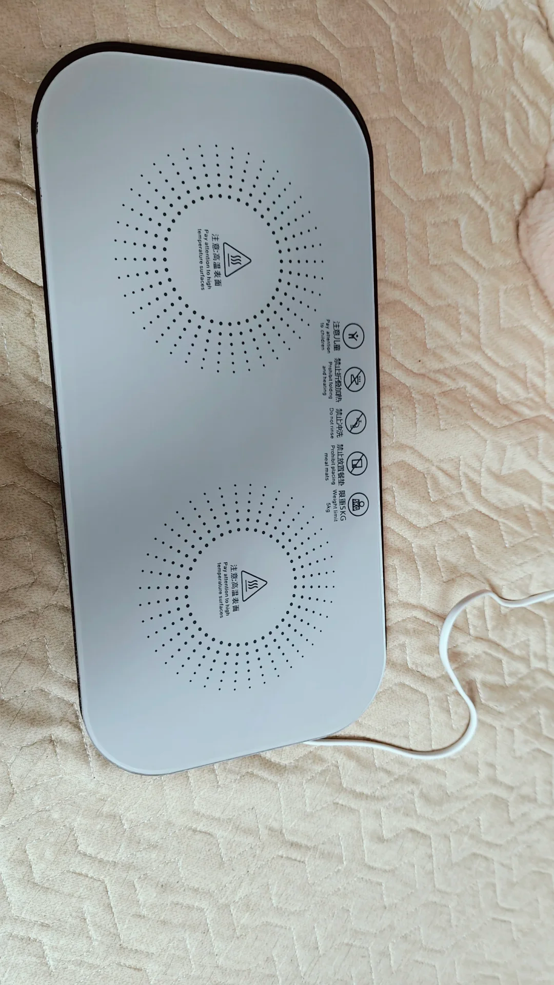 网友@姜主任 的分享:我平时吃饭比较慢,我就在晚上看到一个可以暖菜的产品,我就买回家了,不是很大,但是用着一点用没有,只有盘子底是热的,菜该凉还是凉。