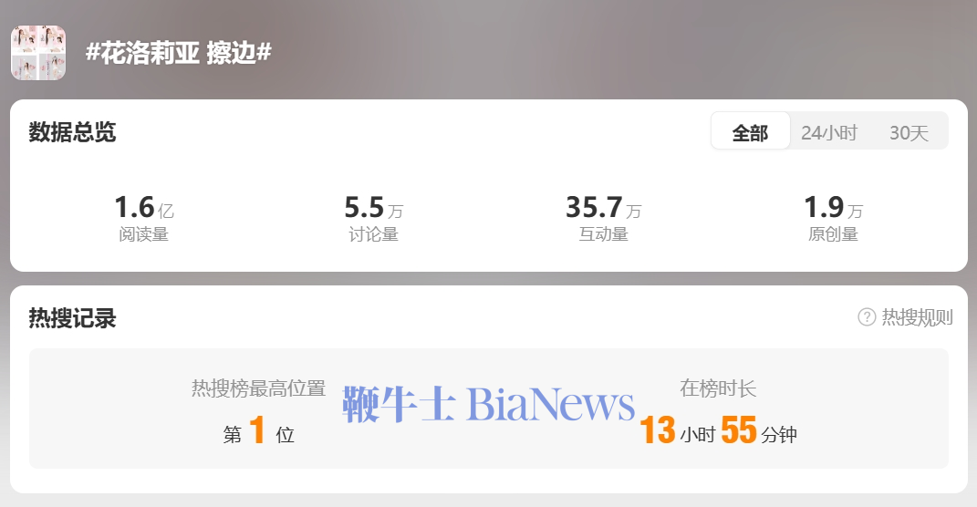鞭牛士9月3日消息,#花洛莉亚擦边#登上热搜榜单,一度升至热搜第一,目前已在榜接近14个小时。