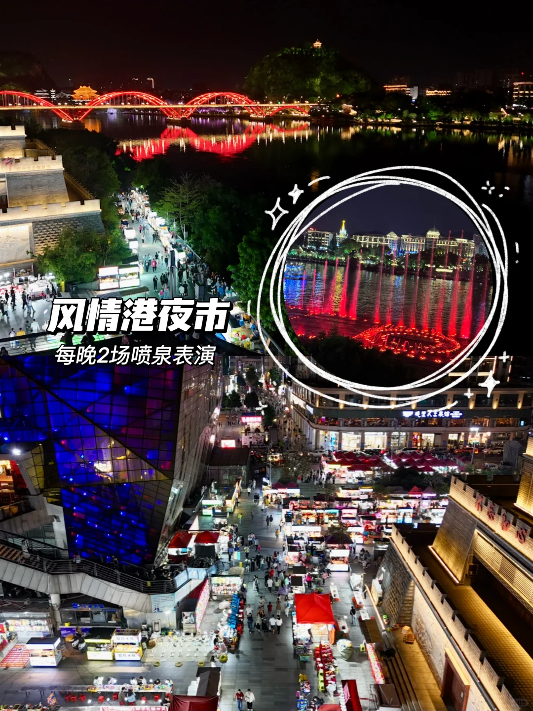 ✔️风情港夜市江边看喷泉,每晚20、21点两场