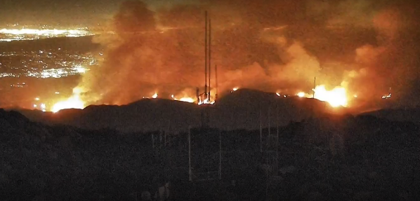 加州消防局表示,目前火势仍未得到控制。(央视记者许骁)
