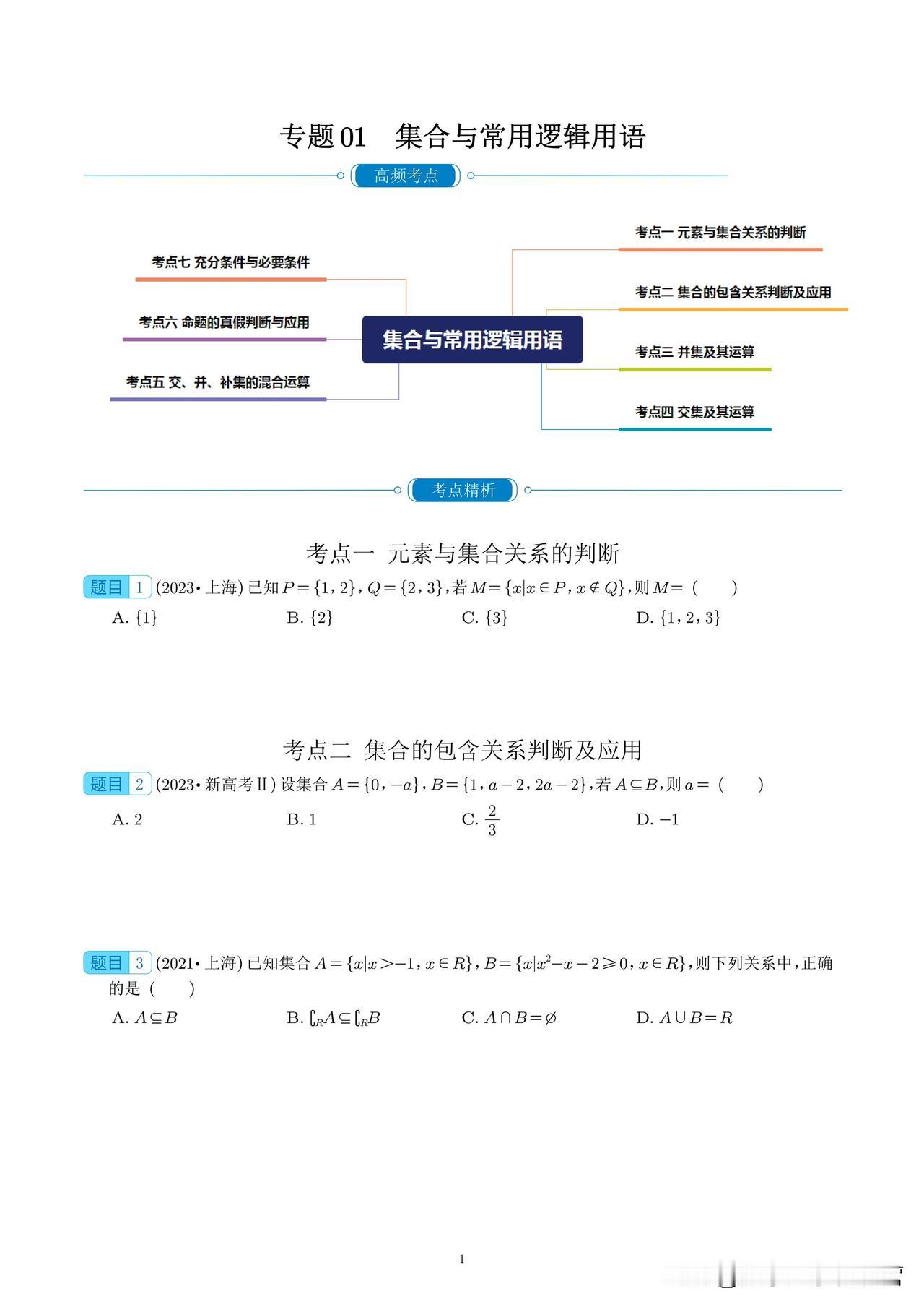 2019-2023五年高考真题分类汇编 专题 01 集合与常用逻辑用语 专题 0