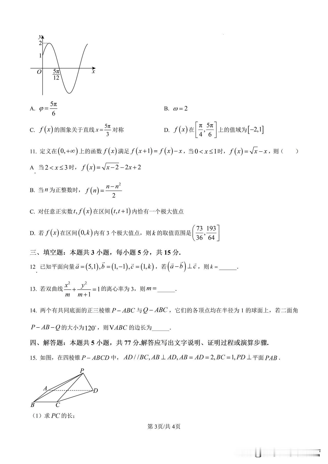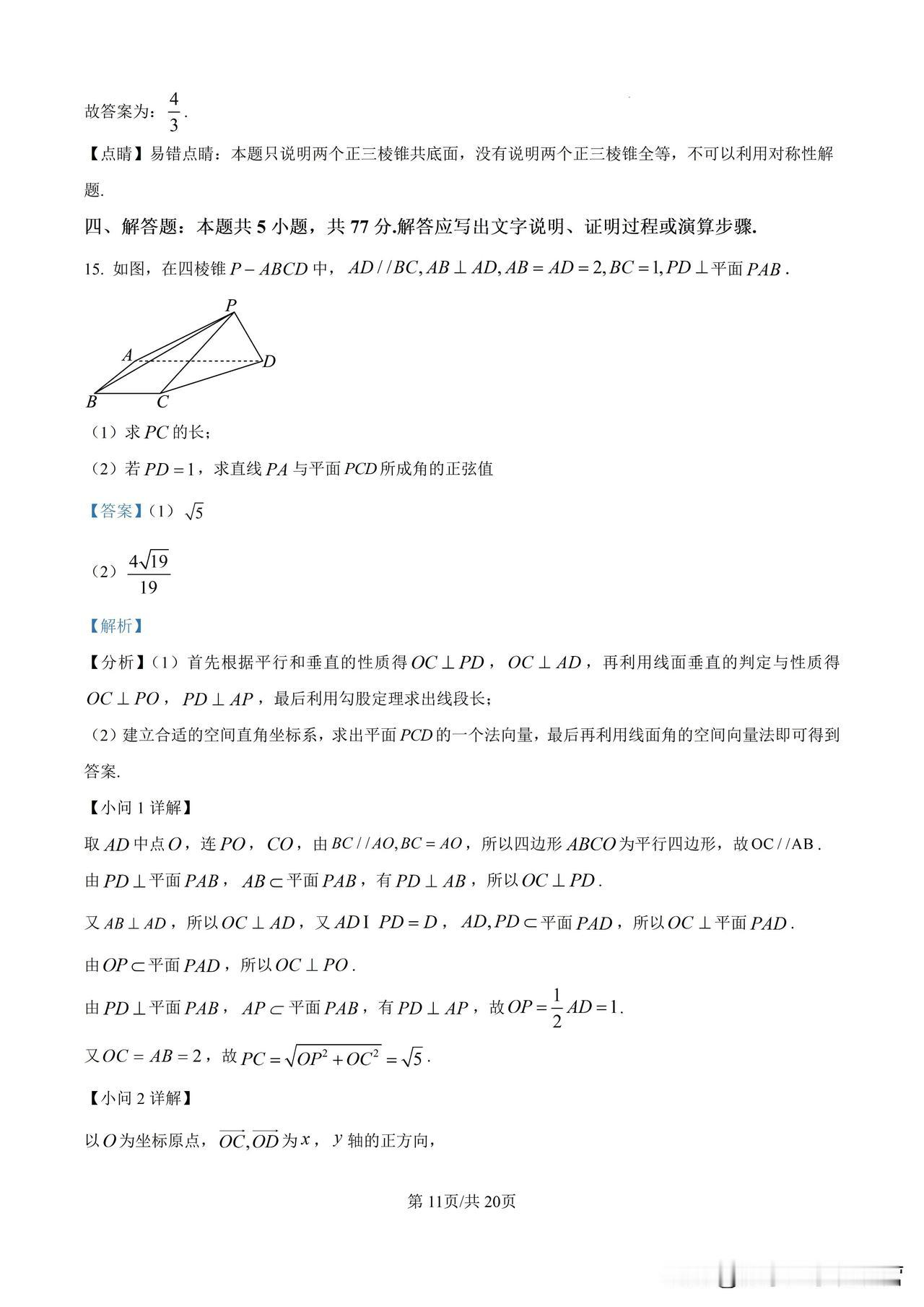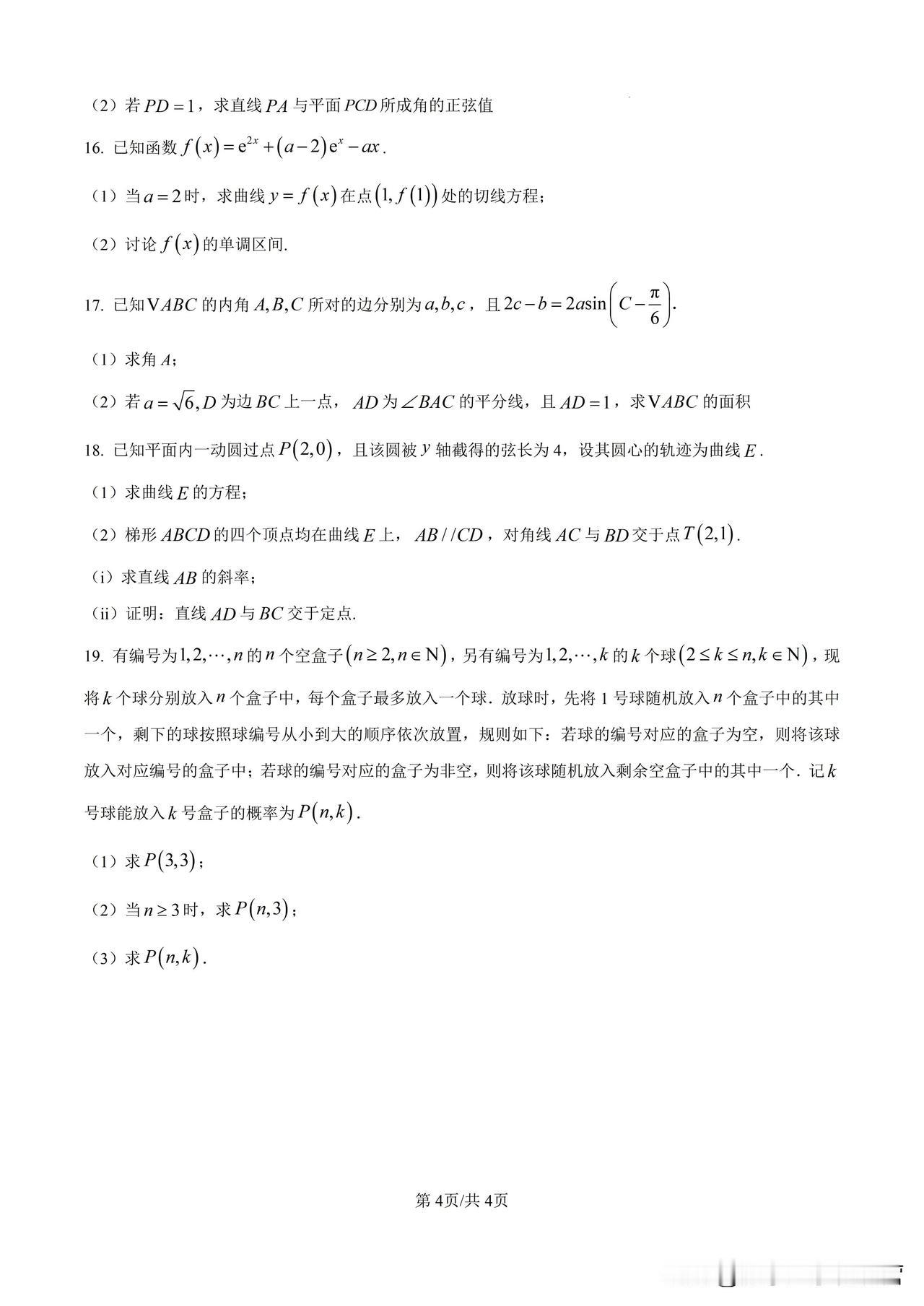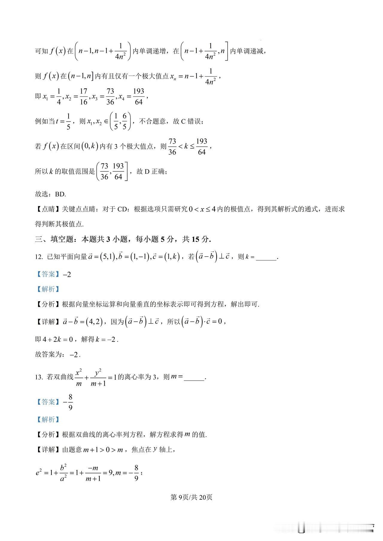 2024湖北武汉高三9月份调研考试试卷及答案详解 湖北武汉的调研卷,质量一般都是很好的,值得高三学生认真做。 考点分布也比较合理。 单选第1题,复数;高考必考; 第2题,集合;高考必考; 第3题,二项式定理;高考有时考有时不考,2024年新高考1卷就没考; 第4题,数列,高考必考; 第5题,立体几何,高考必考; 第6题,函数,高考必考;24年新高考1卷第6题也是考查函数; 第7题,三角函数,高考必考;24年新高考1卷第7题也是考查函数; 第8题,解析几何,椭圆的离心率,高考常考题型,不过24年新高考1卷单选题没出现,填空题第1题就是求双曲线的离心率; 再看解答题,第1题考查立体几何,13分; 第2题考查导数,15分; 第3题考查解三角形,15分; 第4题考查解析几何,17分; 第5题考查概率,17分。
