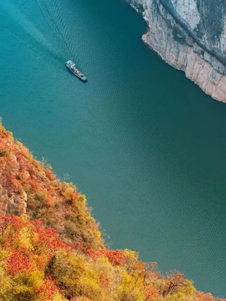 三峡红叶在每年11月开始,长江三峡沿江两岸的高山红叶都会率先染红