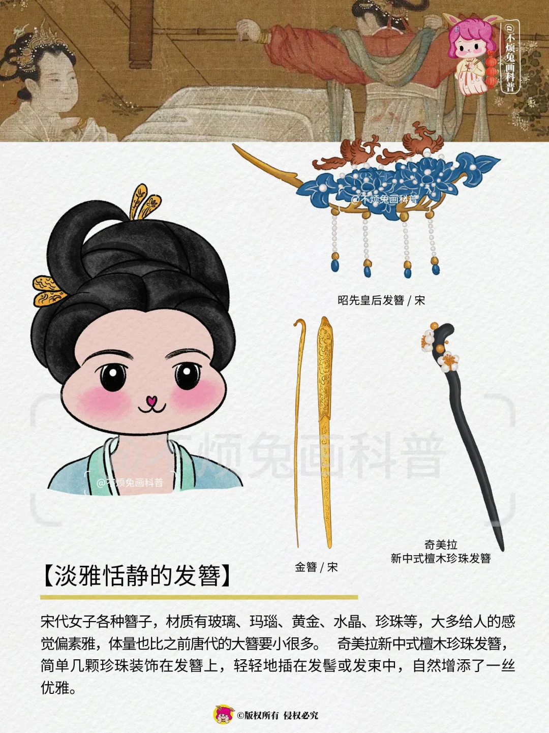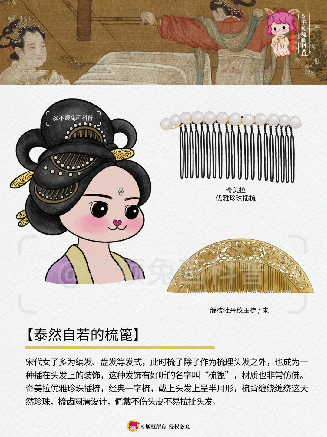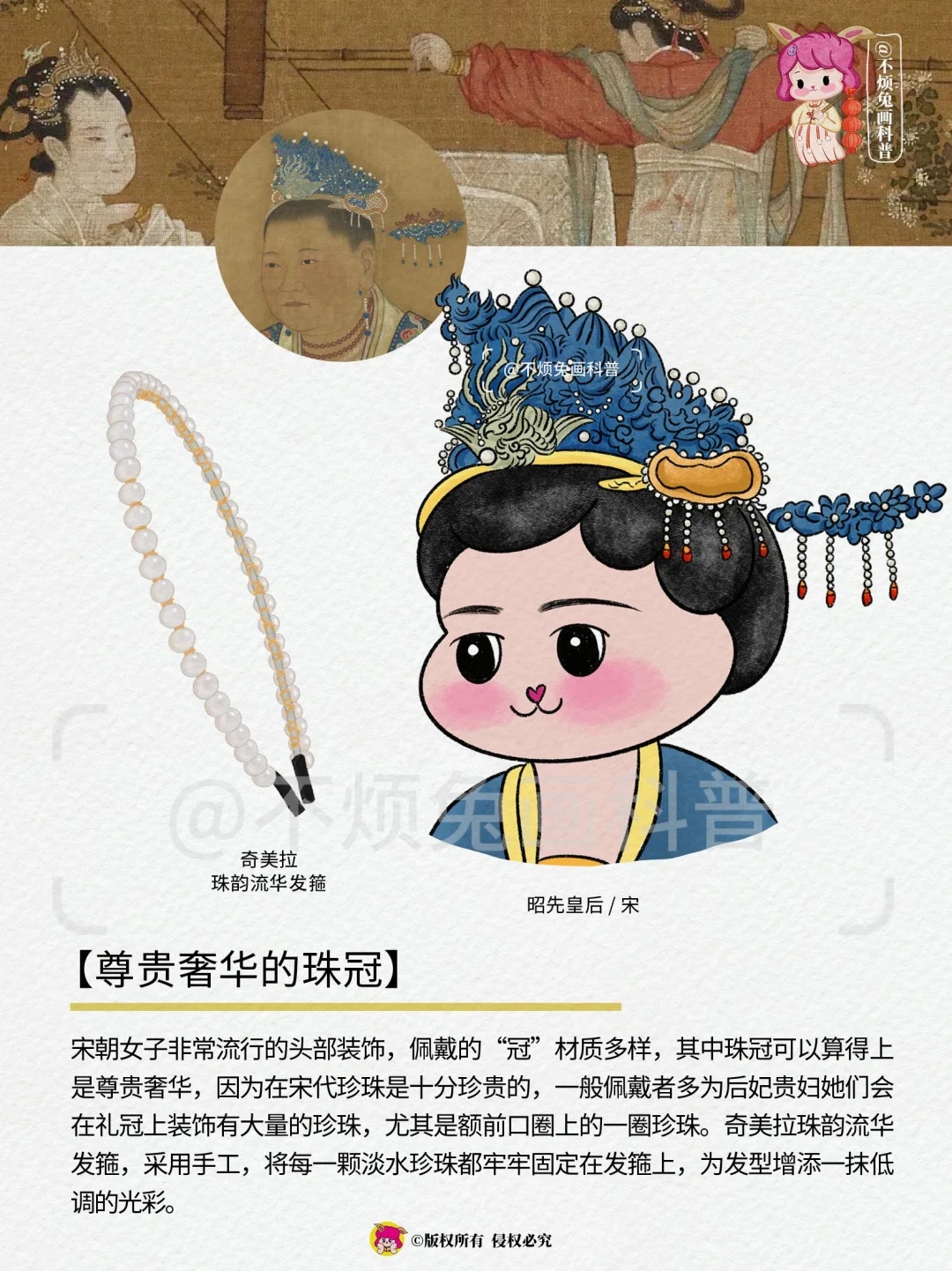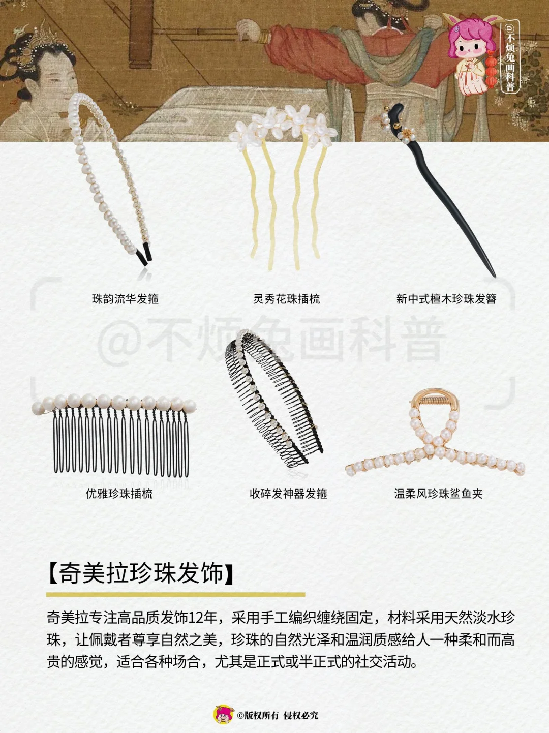 🪞宋代是历史上一个文化繁荣的时期,女性的头饰设计也达到了很高的艺术水平。宋代女性的头饰种类繁多,制作精巧,不仅体现了当时的审美趣味,也反映了社会经济的繁荣和文化的开放。奇美拉专注于高端发饰,发梳采用手工串珠缠绕固定,每颗珍珠都牢牢固定在发梳上,真正做到佩戴时不伤头皮不易拉扯头发。