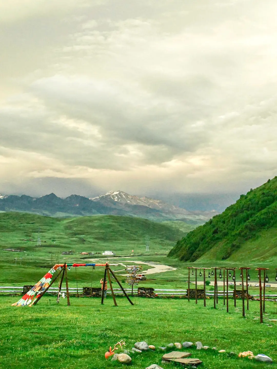这里真的是四川人自己的“阿勒泰”,草坪平整、山丘很有层次,四周是被雪山包围,有草原、冰川、沟壑,拍照非常的有氛围感