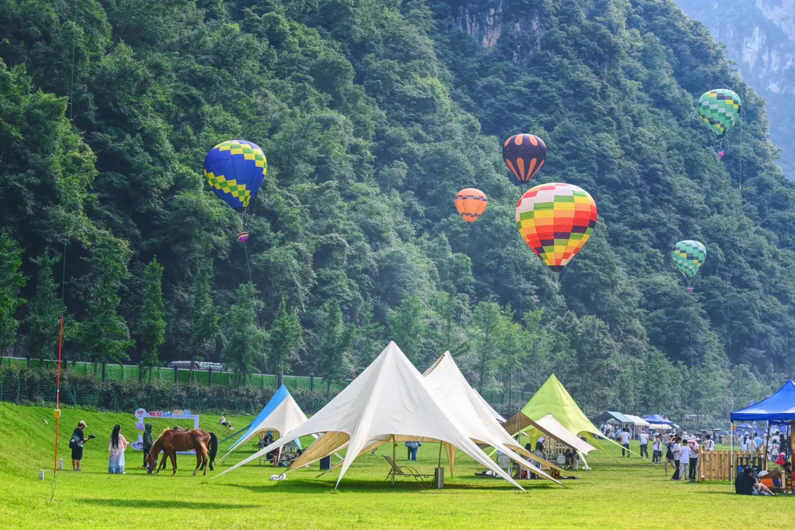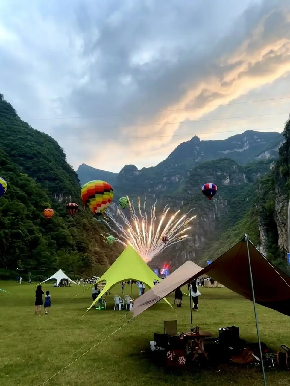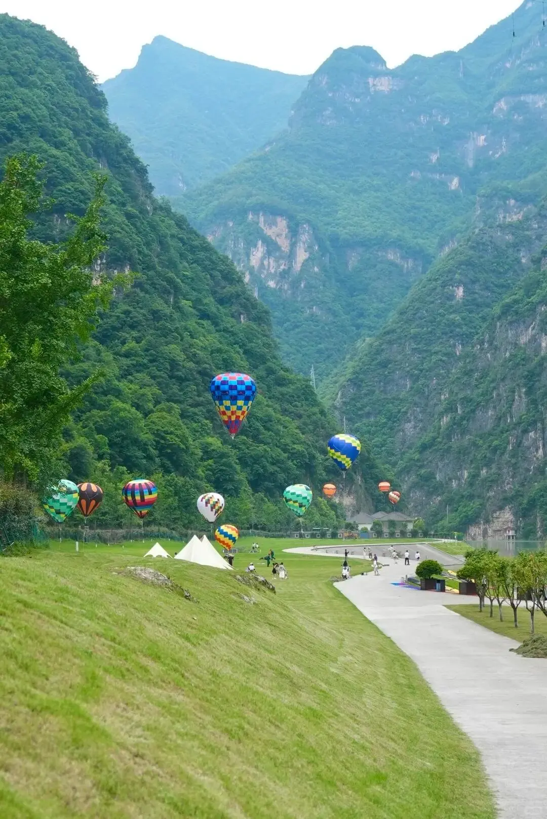 🩵去朝天吼全程一个多小时刺激漂流,漂完流后来到出口旁边的草坪打卡拍照,热气球真的超级出片!
