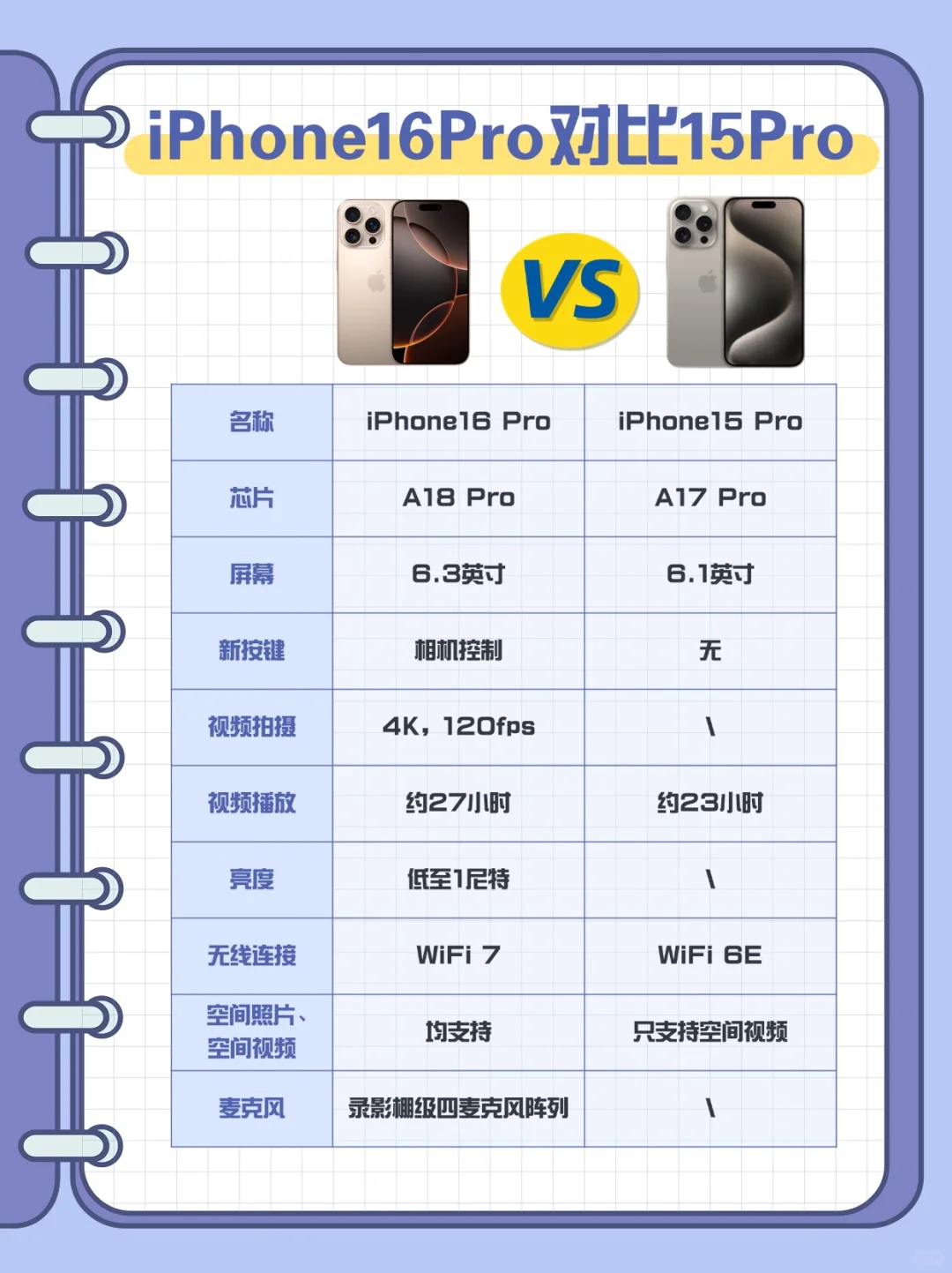 7️⃣ 屏幕尺寸:iPhone16 Pro Max 6.9英寸,iPhone16 Pro 6.3英寸,屏幕面积有小幅提升。