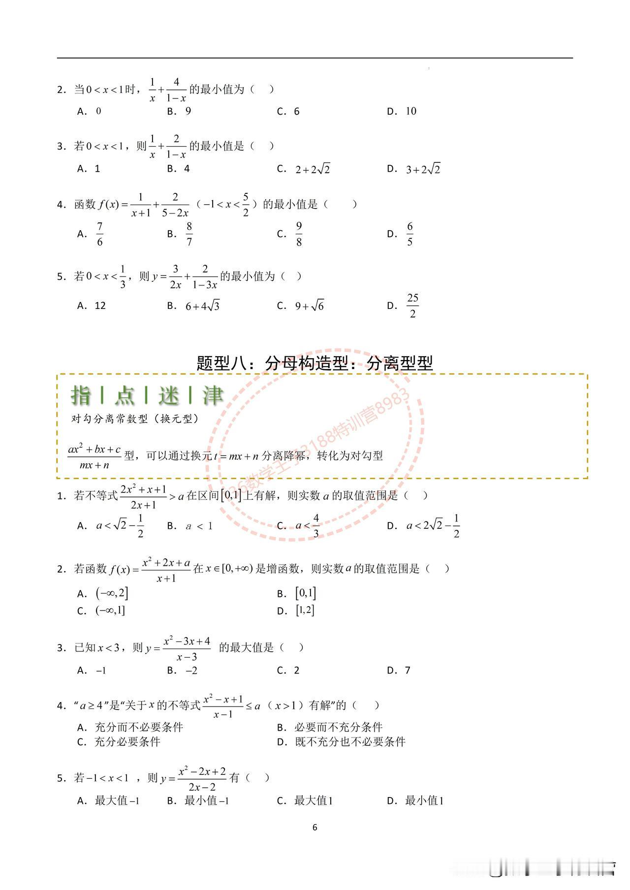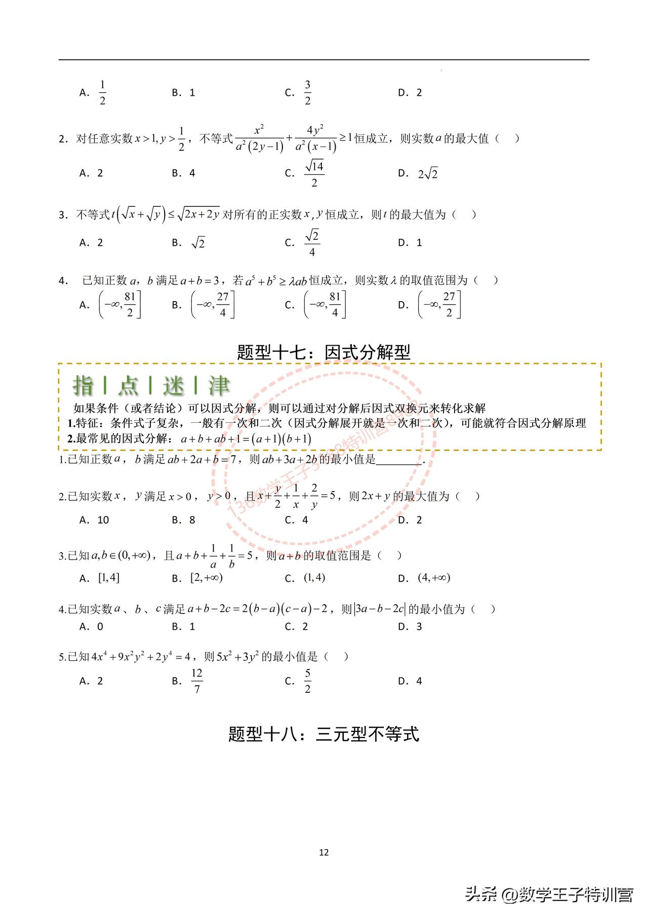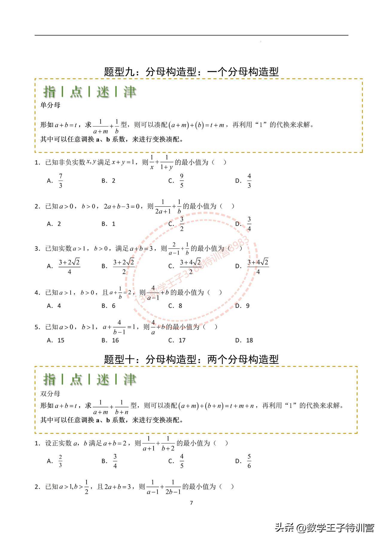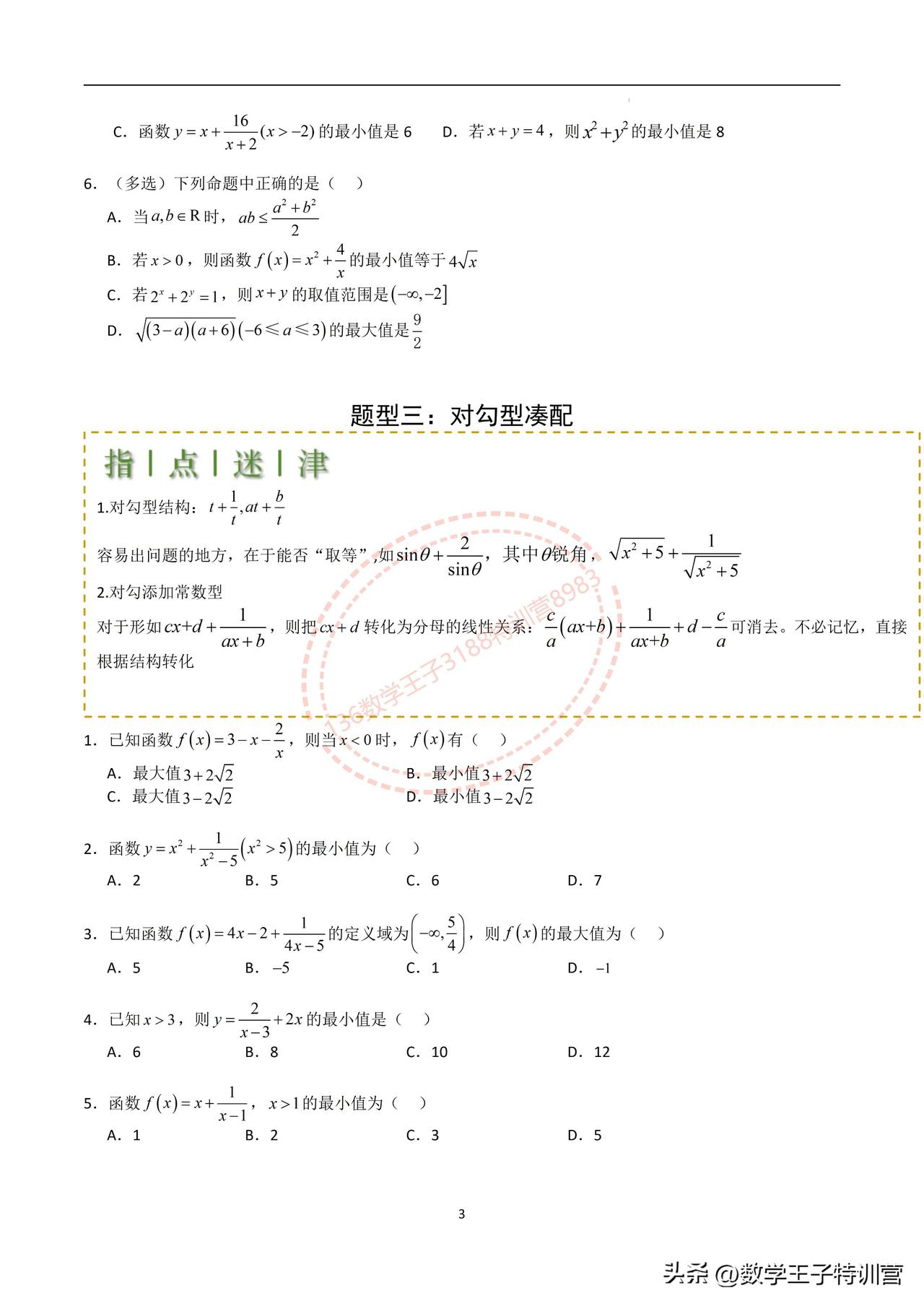 《基本不等式》是高一数学必修一的第一个难点和重点。 解题方法多,题目变化形式也多种多样,很多同学看到题目一脸懵,不知如何变形,也不知该用那种方法来解题。 而基本不等式又是求最值的常用解题工具,和后面要学的解三角形、向量、解析几何等都会联系在一起综合考查。 最重要的是,基本不等式对同学们的灵活运用能力要求比较高,要会分析题目,根据所学的知识和方法来进行解题。这一点是最关键的。 每年到了基本不等式的时候,都会有大量的高一孩子说基本不等式太难了,打死我也想不到,简直就是“基本不懂事”。 学好基本不等式的方法也有,就是多看多听多学,有些方法你没见过,是无论如何都想不到的。 这边有50个讲解视频,11种解题方法,把基本不等式常见的题型和方法都归纳总结好了。认真学两遍,轻松拿下基本不等式。 需要的可以回复“想学”,一起学好基本不等式。