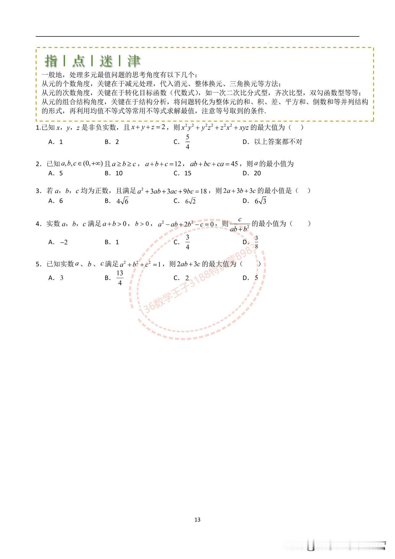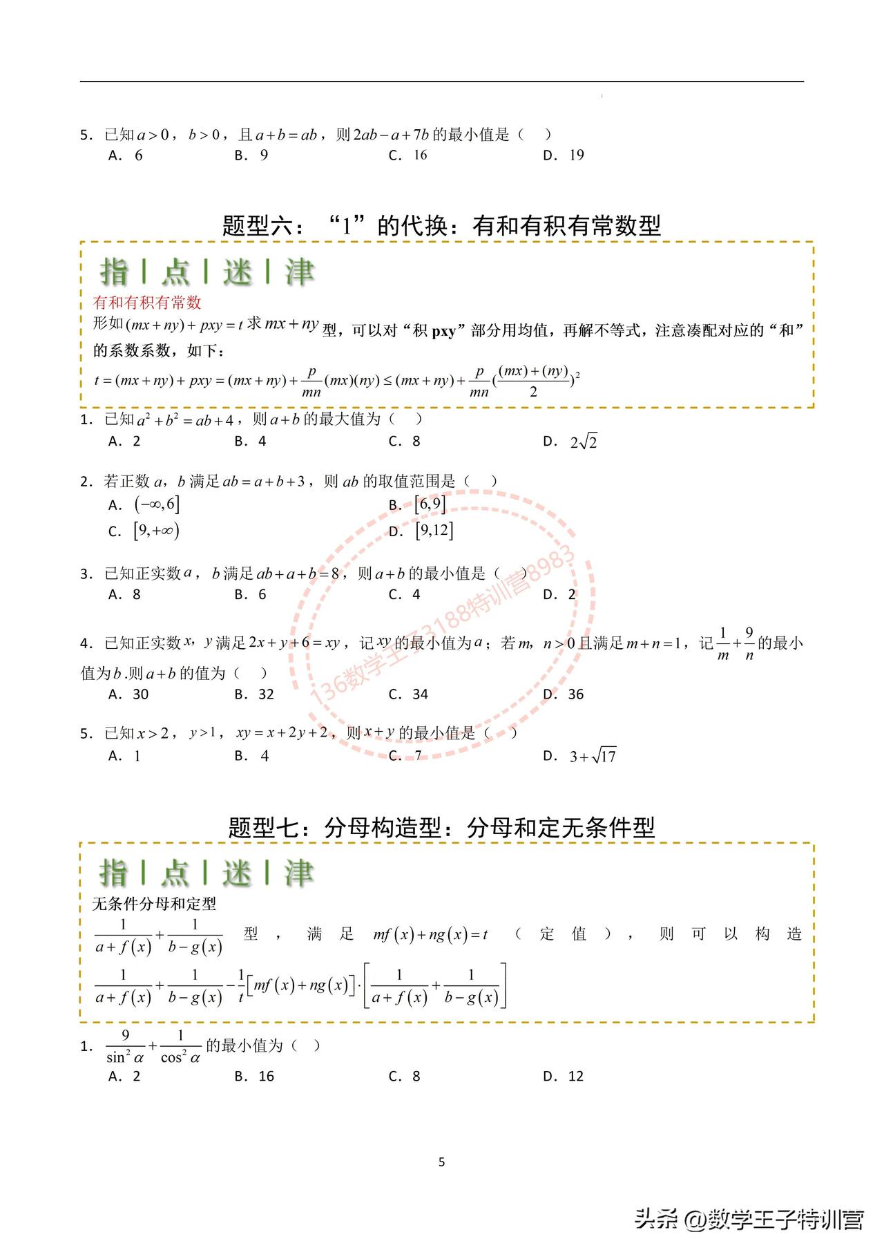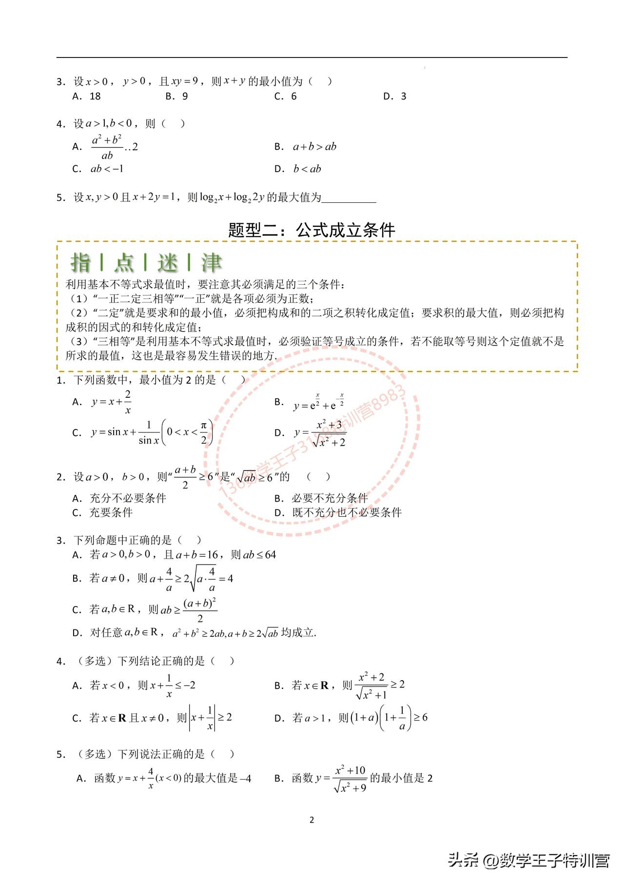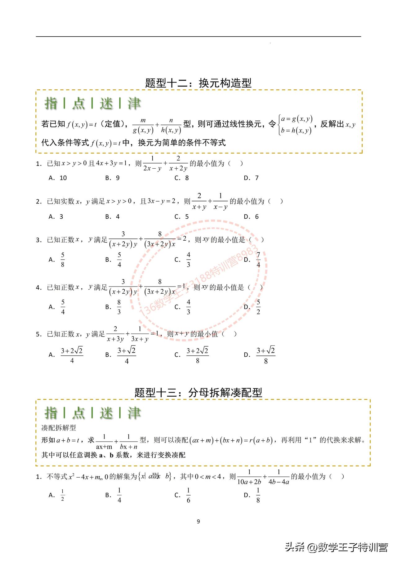 《基本不等式》是高一数学必修一的第一个难点和重点。 解题方法多,题目变化形式也多