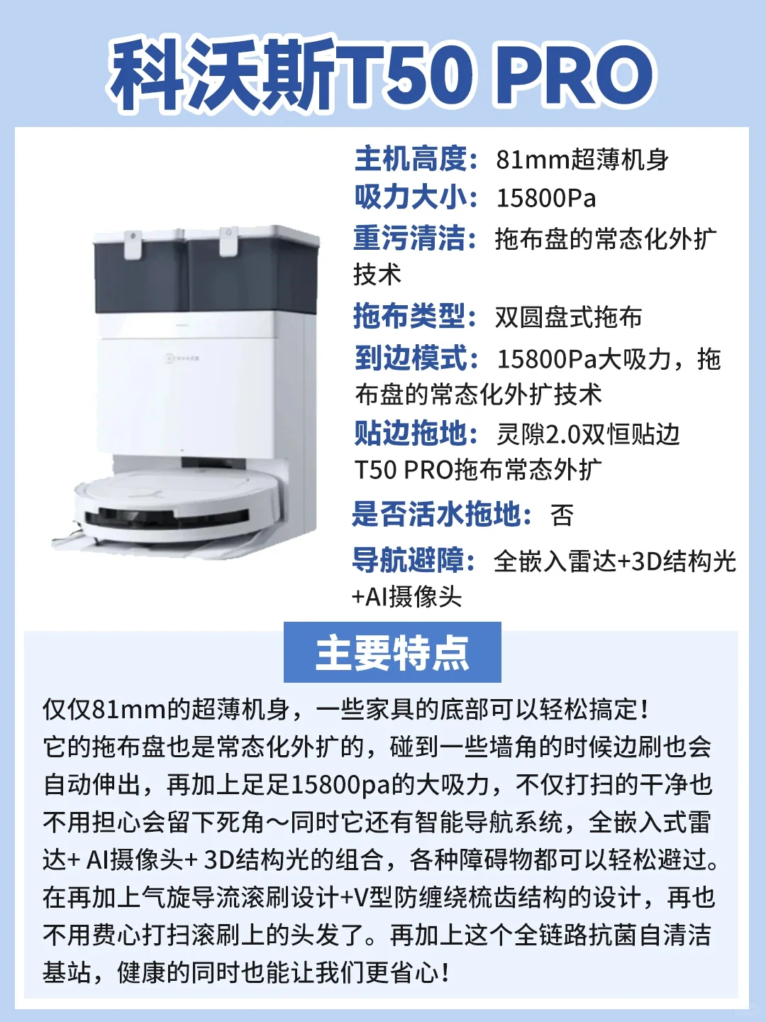 🉐科沃斯T50 PRO用起来会更简单,家里有老人小孩的也能轻松上手。