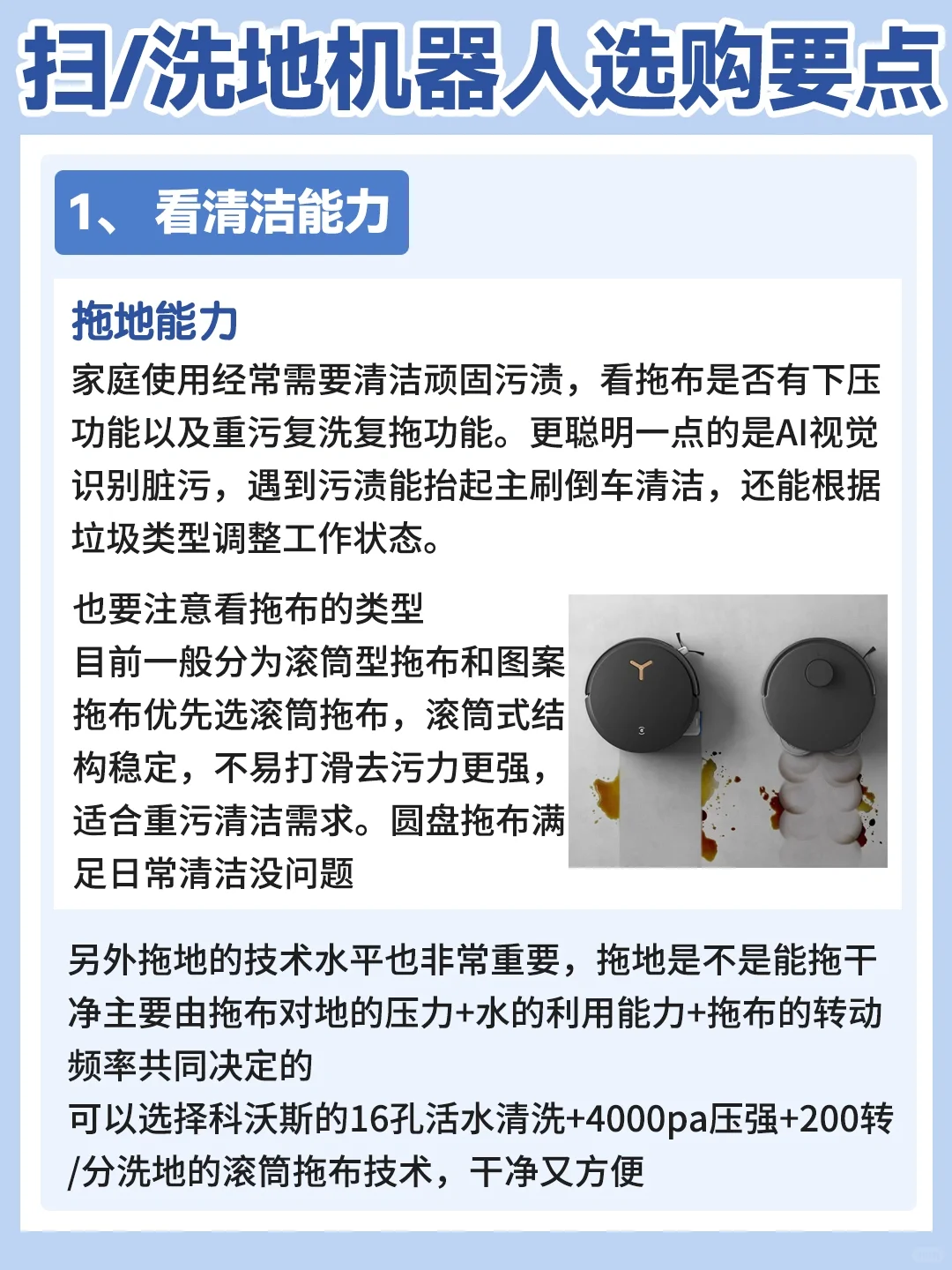 他家这个洗地机器人用的还是OZMO恒压活水洗地,每分钟可以刮洗拖布200次,不管干湿垃圾都能轻松搞定。