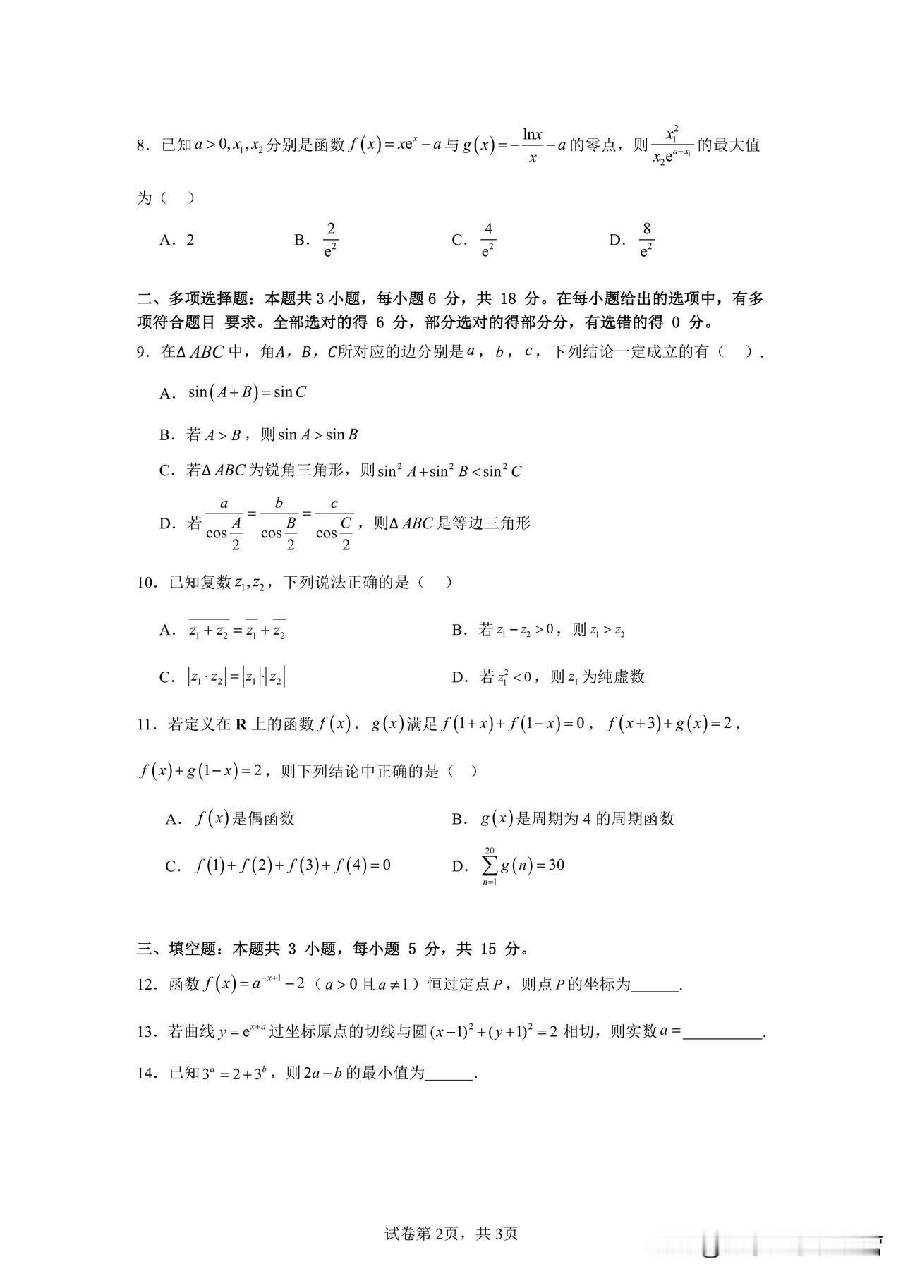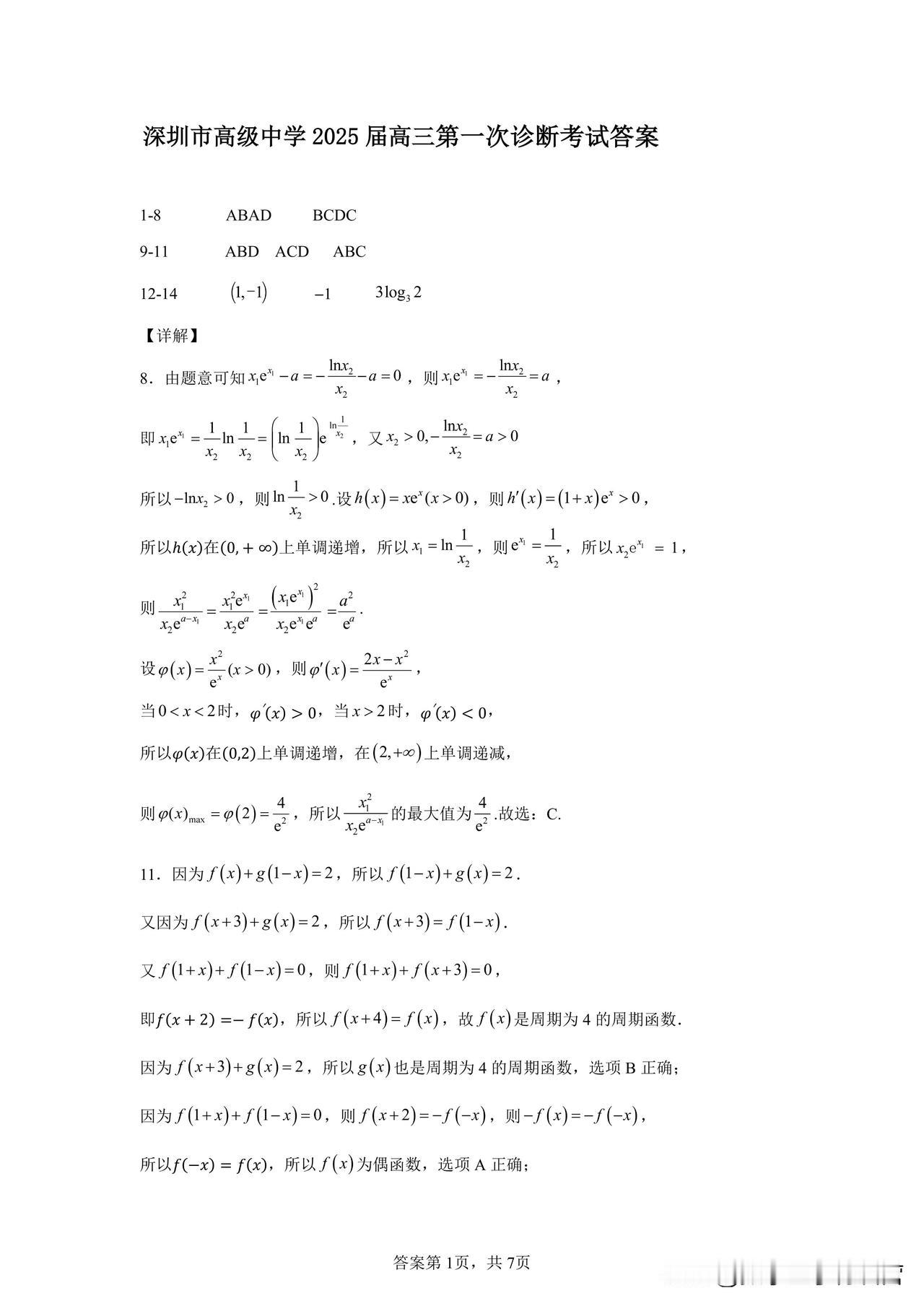 广东省深圳中学高三第一次诊断考试 10月刚考的。题挺好的一份试卷。主要考查函数的内容。 单选第8题,填空第14题,挺不错的。 尤其是填空第14题,字少,可能会难倒不少同学。 这个时候考查的就是同学们的综合运用能力了。 遇到问题,分析问题,解决问题。 值得高三的同学们花两个小时好好做做。