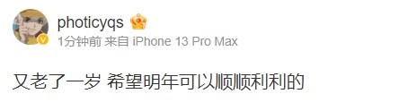 Photic更博:又老了一岁 希望明年可以顺顺利利的