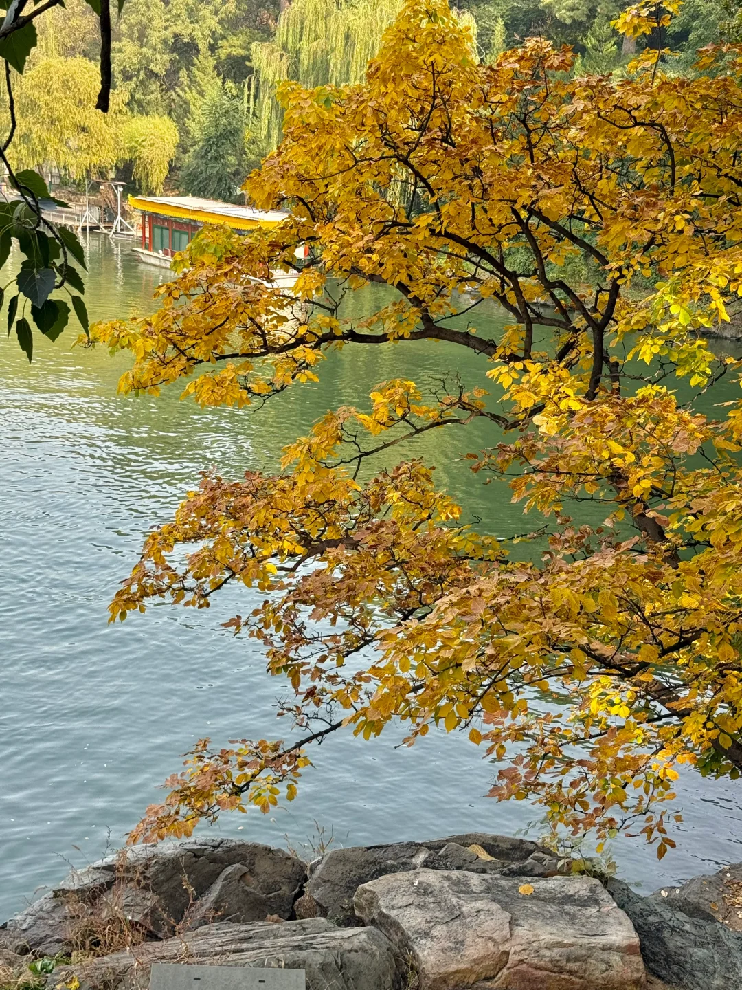 ▪️石头路上面一层,以一整棵树为背景,取湖面和船⛵️,1.5倍拍摄🎬