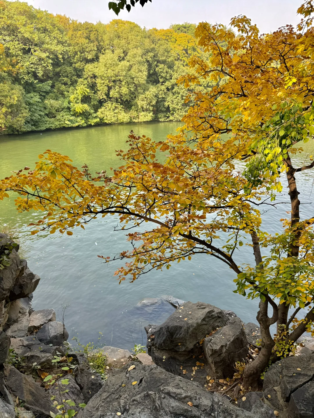 ▪️湖边: 人站在最下面湖面,机位在最上面☝️向下俯拍 ,以树叶和湖面为背景,1倍拍摄!