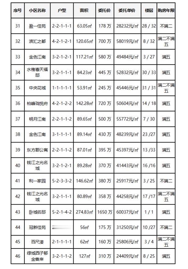 10.13杭州钱江南岸(滨江和萧山)二手房每日成交数据分享,昨日共成交46套,成