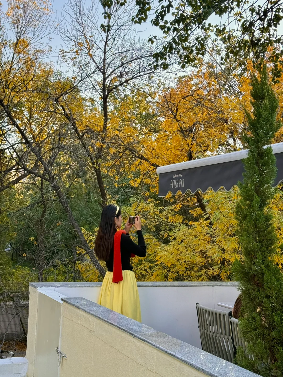 二层露台可以更接近树叶🍂 机位现在旋转楼梯,透过围墙5倍拍摄🎬