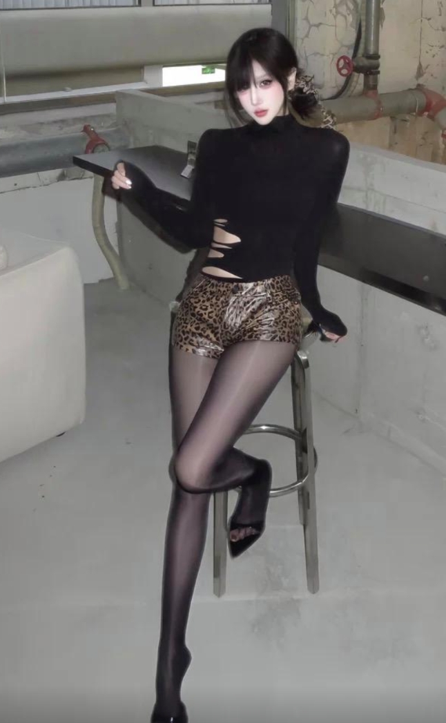 这才是模特界的天花板,尖锥型下巴,白皙的皮肤,修长的黑丝长腿,动作落落大方,满足