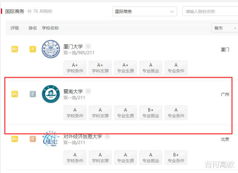 能够在众多实力强劲的院校中脱颖而出,暨南大学自然有其出众之处,作为一所百年院校,“始有暨南,便有商科”的传承便可证明,该校的商科实力不容小觑。