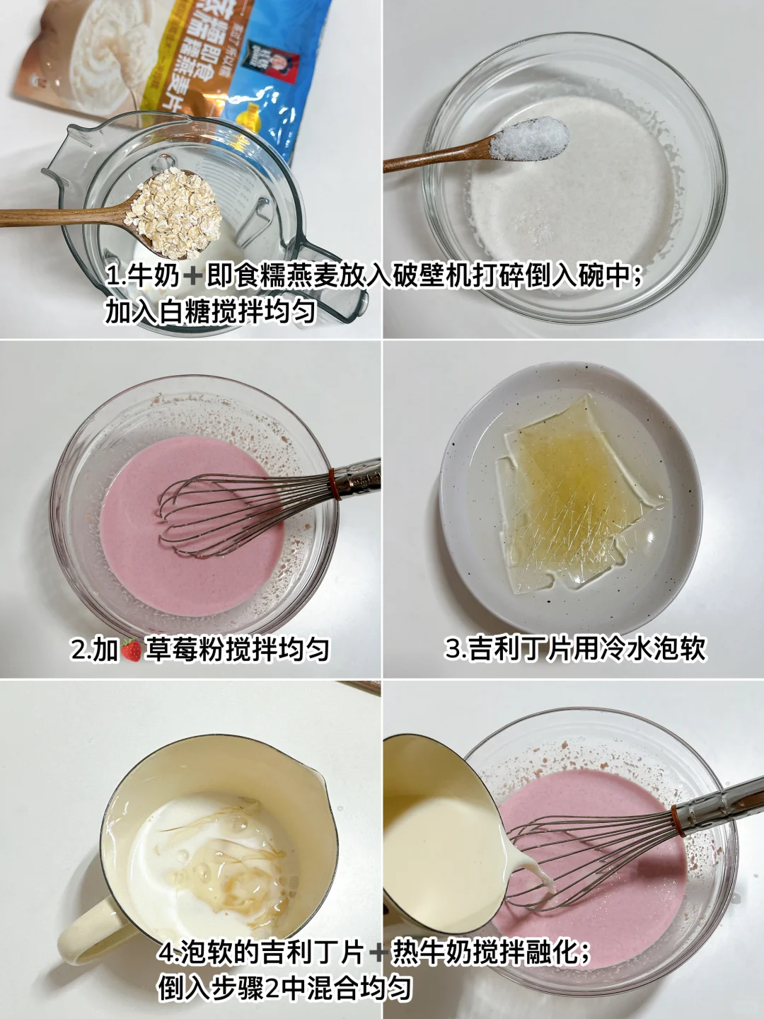 即食糯燕麦70g|草莓粉15g|牛奶300g|