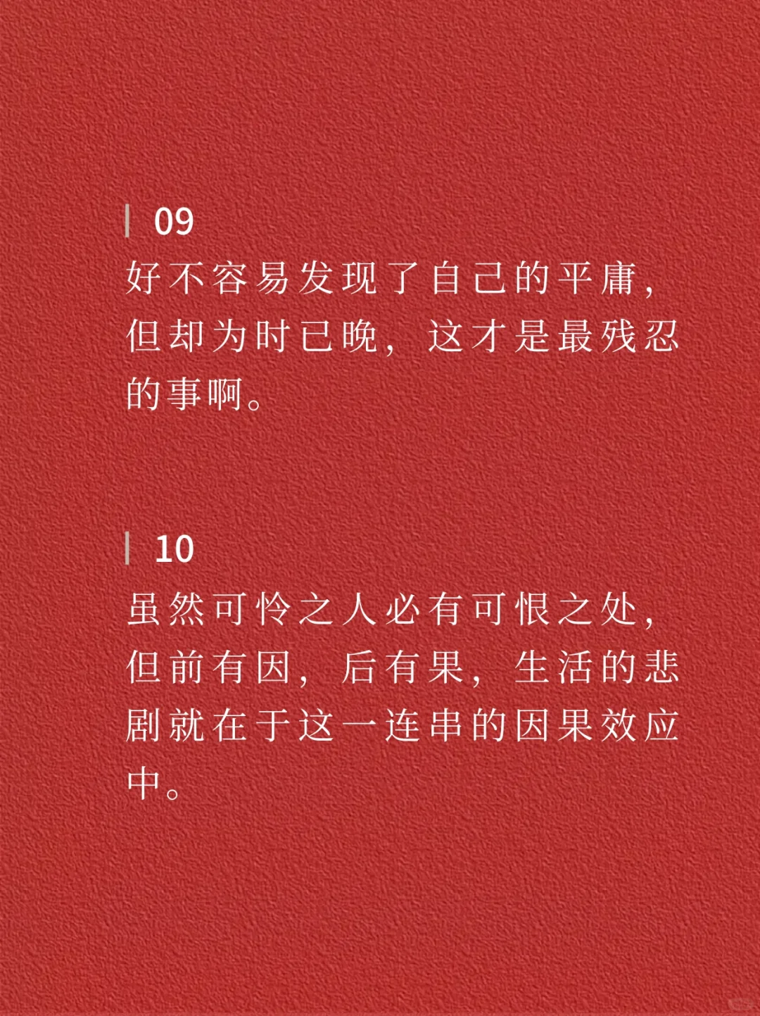 好不容易发现了自己的平庸,但却为时已晚,这才是最残忍的事啊。
