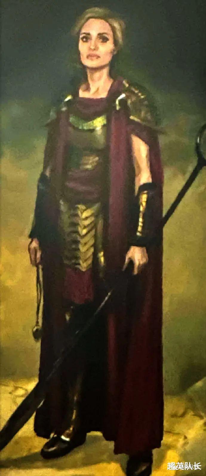 《永恒族》中,由安吉丽娜·朱莉饰演“女战神”缇娜的早期更多造型。就怎么说呢,一句话就是:怎么丑怎么来。由于漫画里面缇娜和