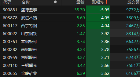 钢铁板块震荡走低 盛德鑫泰跌近6%