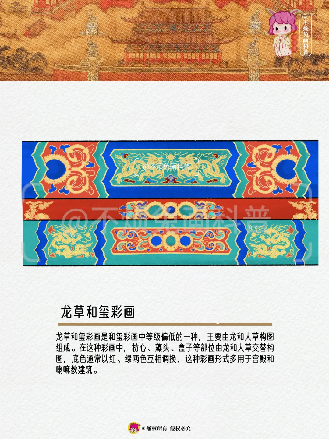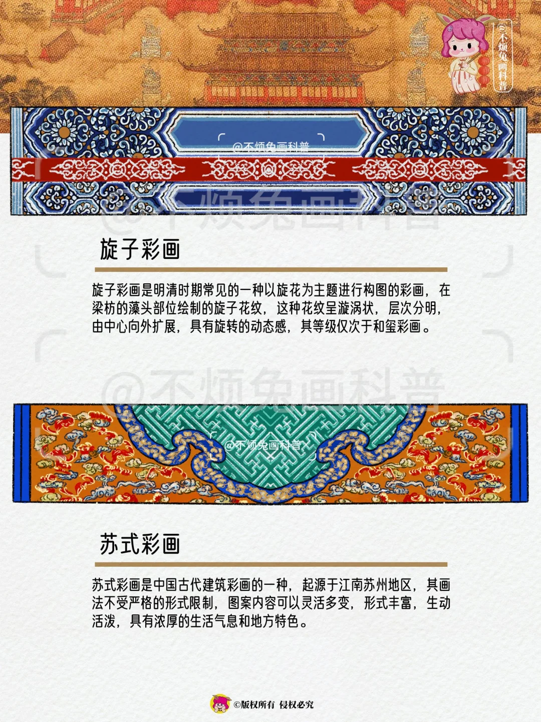 ⛩️在古代建筑中,古建彩绘是其重要的组成部分,光看彩画也能看出建筑的等级,现在跟不烦兔一起看看吧~